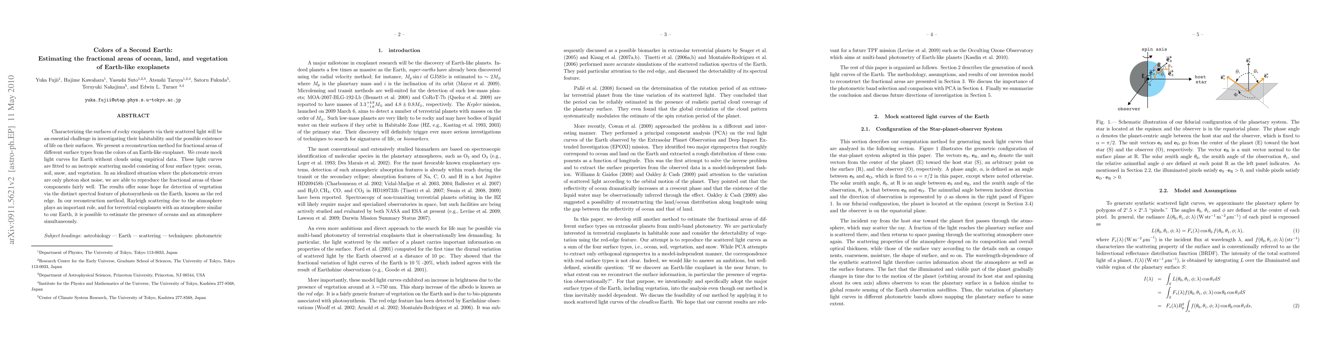 This paper proposes a method to estimate the fractional areas of ocean, land, and vegetation on Earth-like exoplanets using photometric data. The authors create mock light curves and fit them to an isotropic scattering model to determine the surface composition, potentially detecting vegetation via the red edge effect.