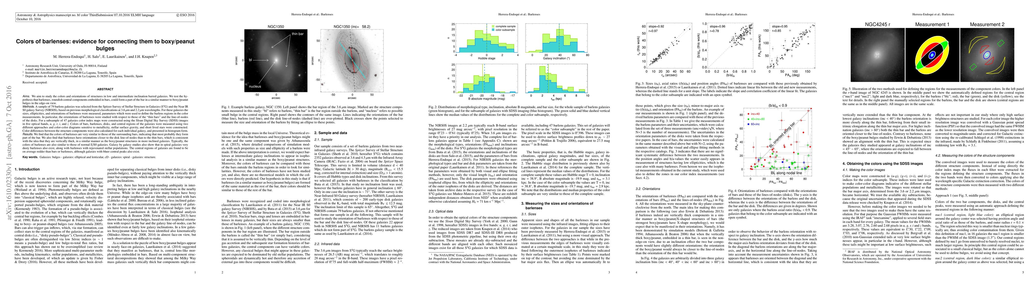This study examines 79 barlens galaxies, finding their colors and orientations suggest barlenses are part of bars, similar to boxy/peanut bulges. Barlenses' colors resemble their surrounding bars and are likened to E/S0 galaxies, with some variations for very dusty or rejuvenated barlenses. Central regions are typically redder than bars or barlenses, but exceptions exist.