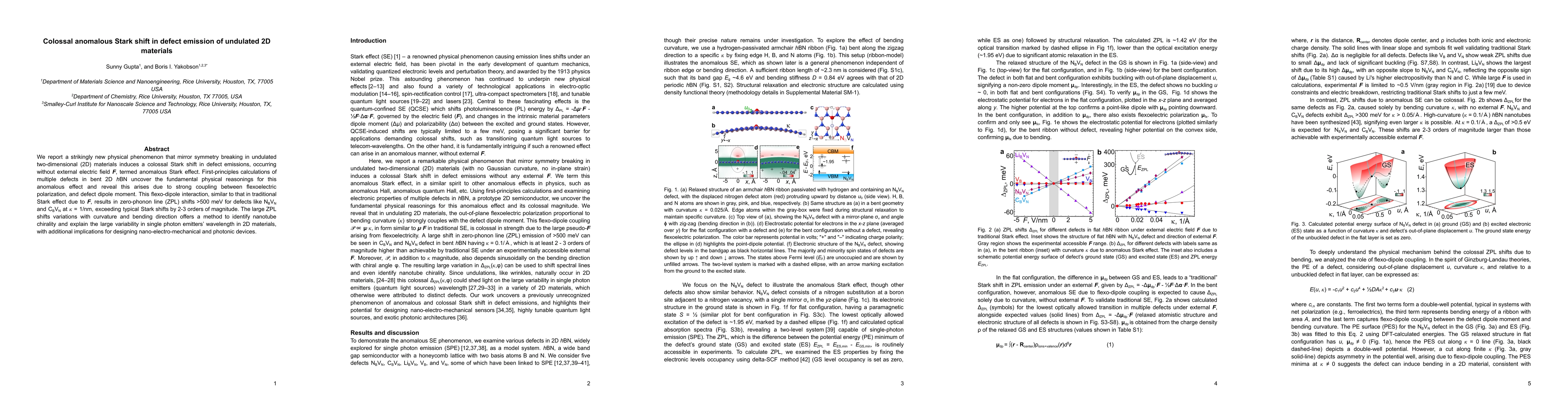 The identification of the flexo-dipole interaction as the cause of colossal anomalous Stark shifts in defect emissions of undulated 2D materials.