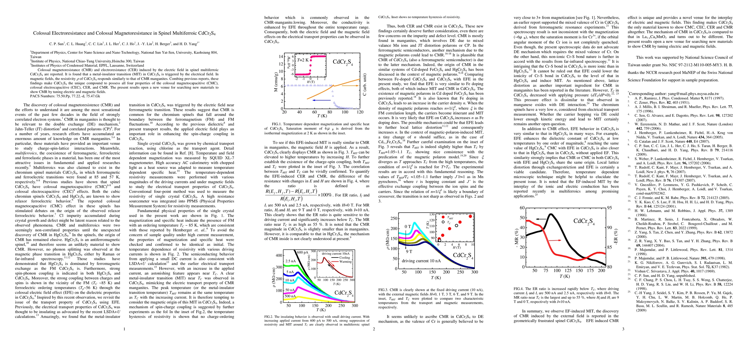 This paper reports colossal magnetoresistance (CMR) and electroresistance (CER) in spinel multiferroic CdCr2S4, revealing a metal-insulator transition triggered by an electric field. The compound exhibits properties similar to CMR manganites under magnetic fields, making it unique for possessing all four colossal properties: CMR, CER, CMC, and CEC. These findings suggest new avenues for discovering materials with CMR through electric and magnetic field tuning.