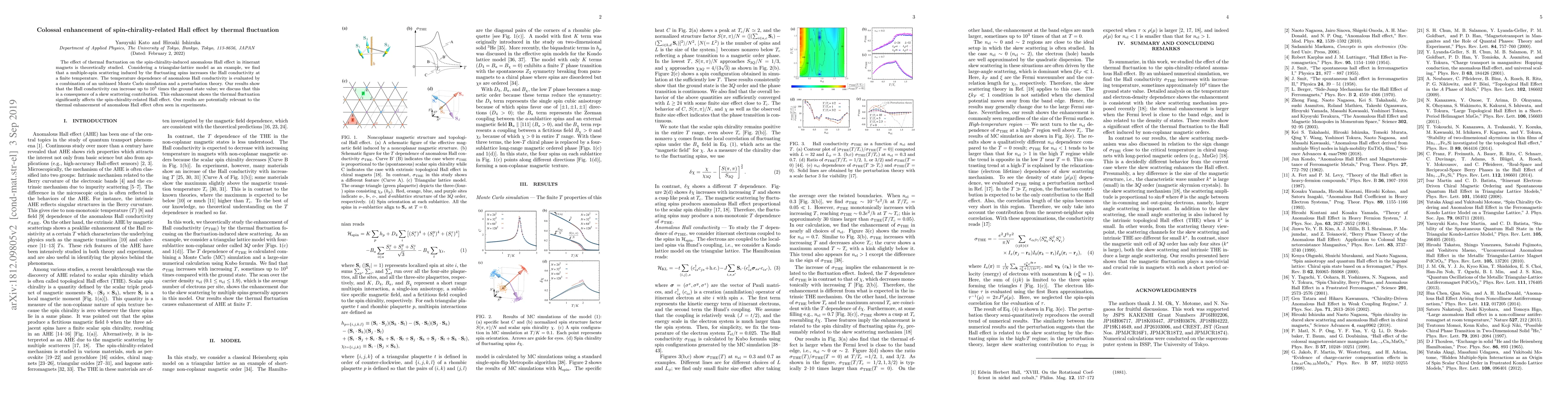 The research demonstrates that thermal fluctuations significantly enhance the spin-chirality-related anomalous Hall effect in itinerant magnets by up to $10^3$ times through multiple-spin scattering, with implications for experimental observations of thermal enhancement in anomalous Hall effect.