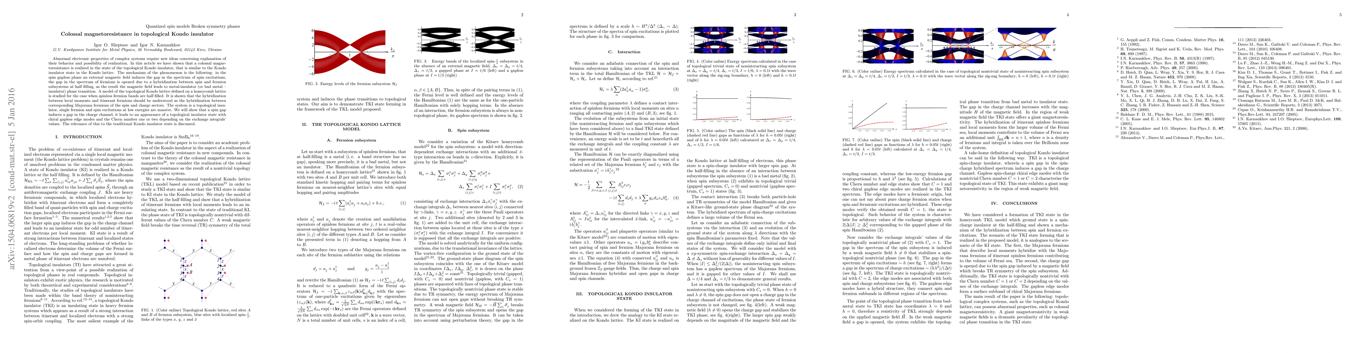 Abnormal electronic properties of complex systems require new ideas concerning explanation of their behavior and possibility of realization. In this acticle we show that a colossal magnetoresistance is realized in the state of the topological Kondo insulator, that is similar to the Kondo insulator state in the Kondo lattice. The mechanism of the phenomenon is the following: in the spin gapless phase an external magnetic field induces the gap in the spectrum of spin excitations, the gap in the spectrum of fermions is opened due to a hybridization between spin and fermion subsystems at half filling, as the result the magnetic field leads to metal-insulator (or bad metal - insulator) phase transition. A model of the topological Kondo lattice defined on a honeycomb lattice is studied for the case when spinless fermion bands are half filled. It is shown that the hybridization between local moments and itinerant fermions should be understood as the hybridization between corresponding Majorana fermions of the spin and charge sectors. The system is a topological insulator, single fermion and spin excitations at low energies are massive. We will show that a spin gap induces a gap in the charge channel, it leads to an appearance of a topological insulator state with chiral gapless edge modes and the Chern number one or two depending on the exchange integrals' values. The relevance of this to the traditional Kondo insulator state is discussed.