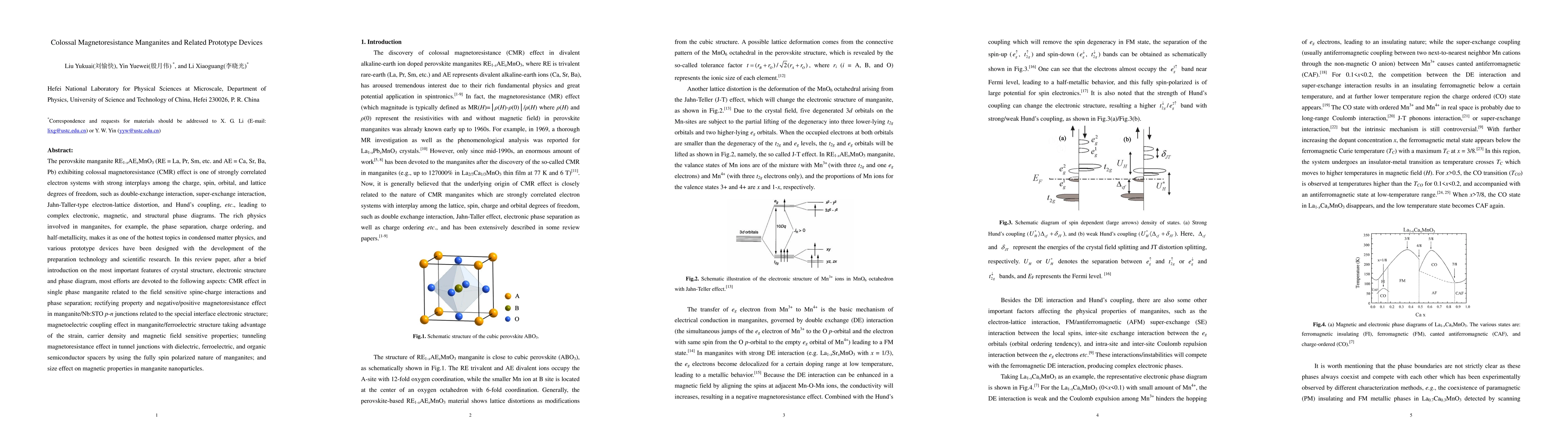 This paper reviews the colossal magnetoresistance (CMR) phenomena in manganites, focusing on spin charge interactions, phase separation, and electronic structure at manganite interfaces. It also discusses magnetoelectric coupling, tunneling magnetoresistance, and the impact of particle size on magnetic properties in manganite nanoparticles.