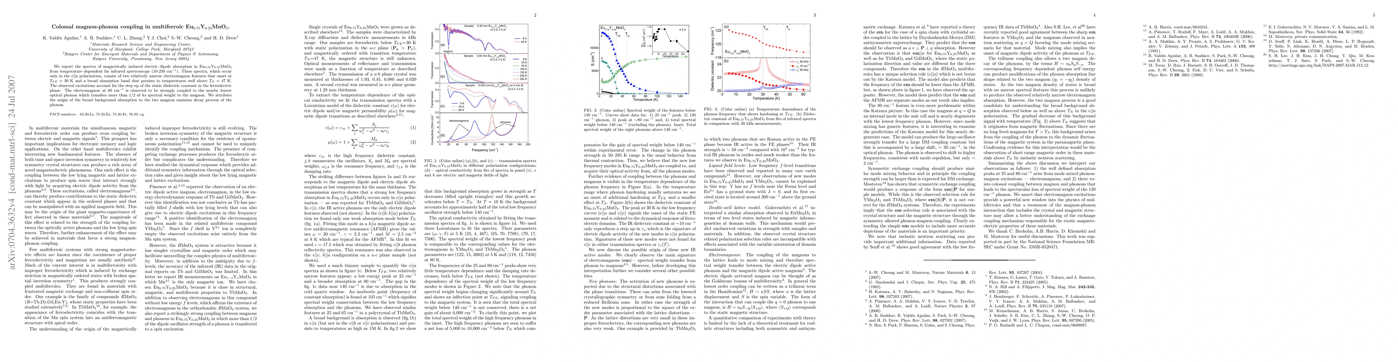 This study investigates the magnetically induced electric dipole absorption in Eu$_{0.75}$Y$_{0.25}$MnO$_3$ via far infrared spectroscopy, revealing strong magnon-phonon coupling. The spectra show two electromagnon features and a broad absorption band, with the 80 cm$^{-1}$ electromagnon transferring over half its spectral weight to a phonon, indicating colossal magnon-phonon coupling.
