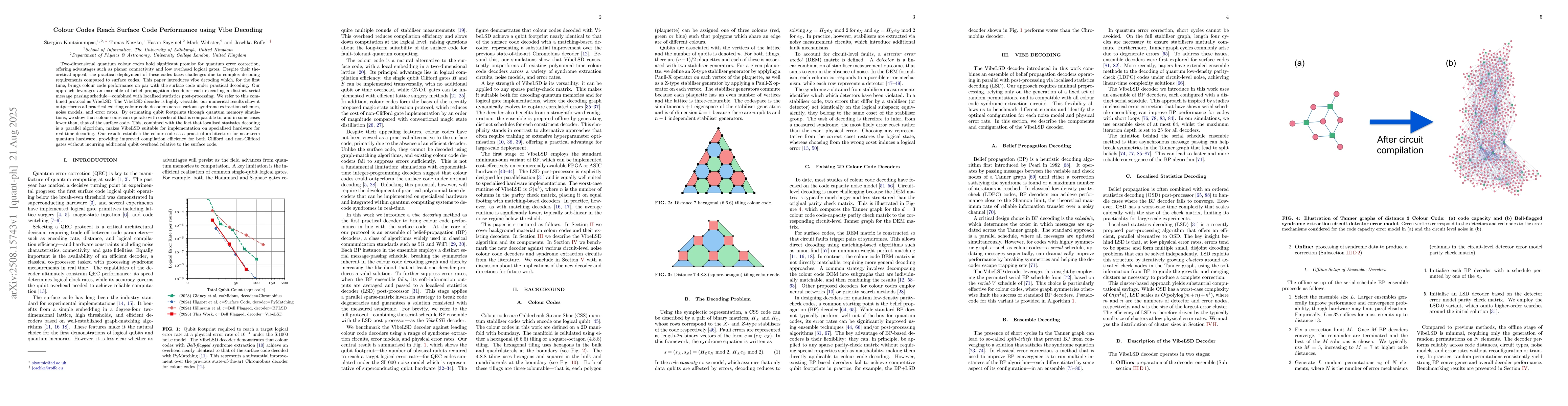 Two-dimensional quantum colour codes hold significant promise for quantum error correction, offering advantages such as planar connectivity and low overhead logical gates. Despite their theoretical appeal, the practical deployment of these codes faces challenges due to complex decoding requirements compared to surface codes. This paper introduces vibe decoding which, for the first time, brings colour code performance on par with the surface code under practical decoding. Our approach leverages an ensemble of belief propagation decoders - each executing a distinct serial message passing schedule - combined with localised statistics post-processing. We refer to this combined protocol as VibeLSD. The VibeLSD decoder is highly versatile: our numerical results show it outperforms all practical existing colour code decoders across various syndrome extraction schemes, noise models, and error rates. By estimating qubit footprints through quantum memory simulations, we show that colour codes can operate with overhead that is comparable to, and in some cases lower than, that of the surface code. This, combined with the fact that localised statistics decoding is a parallel algorithm, makes VibeLSD suitable for implementation on specialised hardware for real-time decoding. Our results establish the colour code as a practical architecture for near-term quantum hardware, providing improved compilation efficiency for both Clifford and non-Clifford gates without incurring additional qubit overhead relative to the surface code.