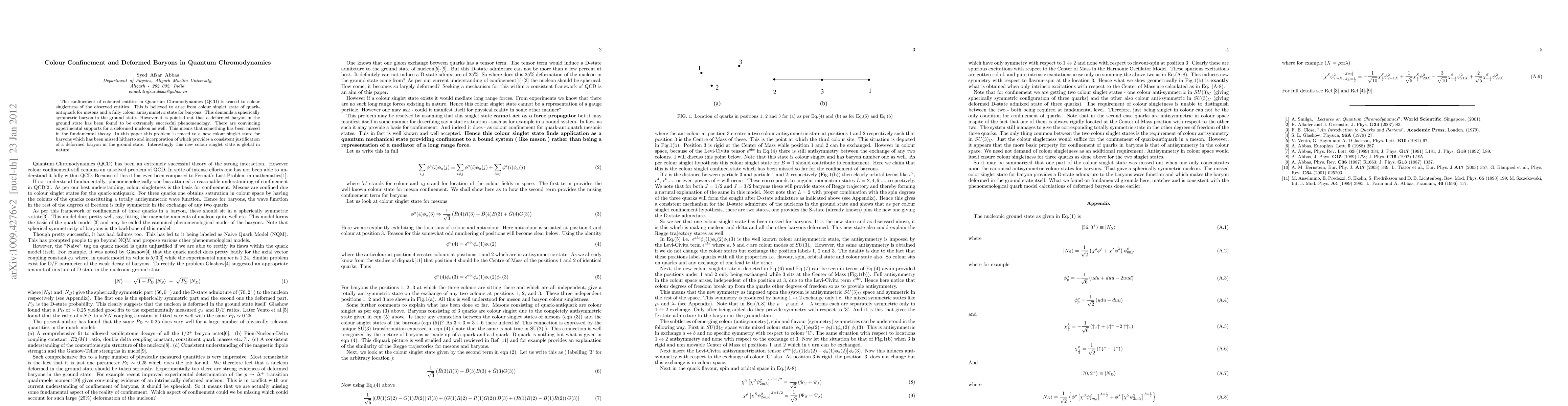 The confinement of coloured entities in Quantum Chromodynamics (QCD) is traced to colour singletness of the observed entities. This is believed to arise from colour singlet state of quark-antiquark for mesons and a fully colour antisymmetric state for baryons. This demands a spherically symmetric baryon in the ground state. However it is pointed out that a deformed baryon in the ground state has been found to be extremely successful phenomenology. There are convincing experimental supports for a deformed nucleon as well. This means that something has been missed in the fundamental theory. In this paper this problem is traced to a new colour singlet state for baryons which has been missed hitherto and incorporation of which provides a consistent justification of a deformed baryon in the ground state. Interestingly this new colour singlet state is global in nature.