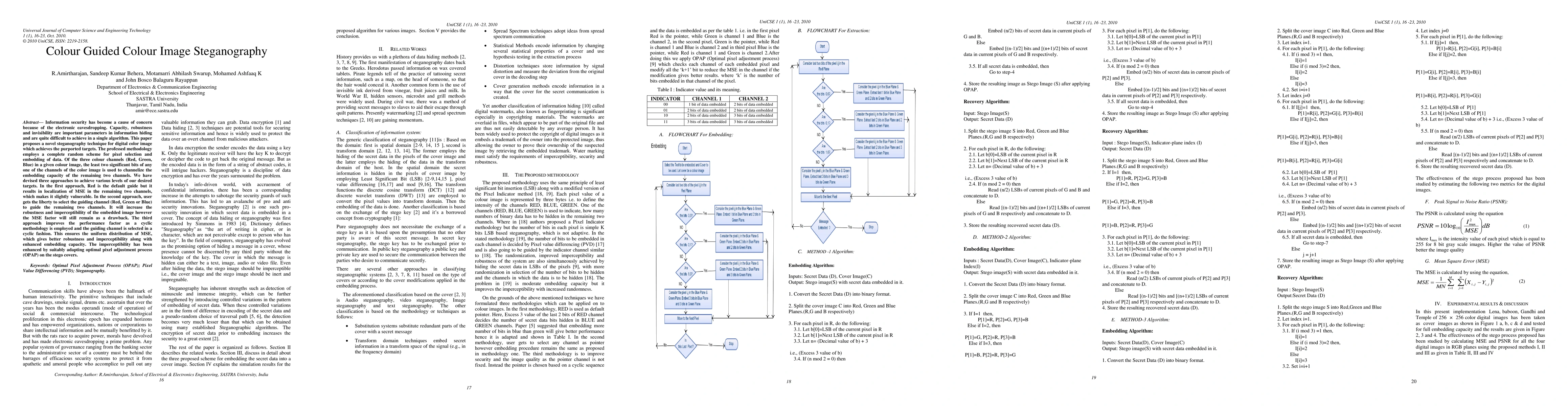 Information security has become a cause of concern because of the electronic eavesdropping. Capacity, robustness and invisibility are important parameters in information hiding and are quite difficult to achieve in a single algorithm. This paper proposes a novel steganography technique for digital color image which achieves the purported targets. The professed methodology employs a complete random scheme for pixel selection and embedding of data. Of the three colour channels (Red, Green, Blue) in a given colour image, the least two significant bits of any one of the channels of the color image is used to channelize the embedding capacity of the remaining two channels. We have devised three approaches to achieve various levels of our desired targets. In the first approach, Red is the default guide but it results in localization of MSE in the remaining two channels, which makes it slightly vulnerable. In the second approach, user gets the liberty to select the guiding channel (Red, Green or Blue) to guide the remaining two channels. It will increase the robustness and imperceptibility of the embedded image however the MSE factor will still remain as a drawback. The third approach improves the performance factor as a cyclic methodology is employed and the guiding channel is selected in a cyclic fashion. This ensures the uniform distribution of MSE, which gives better robustness and imperceptibility along with enhanced embedding capacity. The imperceptibility has been enhanced by suitably adapting optimal pixel adjustment process (OPAP) on the stego covers.