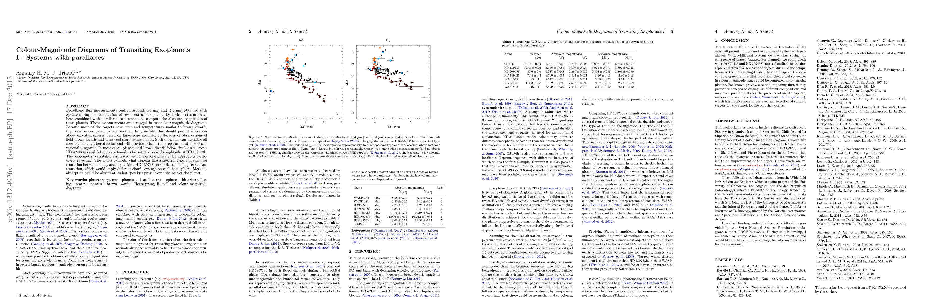 A study creates colour-magnitude diagrams for seven transiting exoplanets, revealing similarities between planets and brown dwarfs, but also an outlier in planet HD 189733b with varying spectral characteristics between day and night sides.