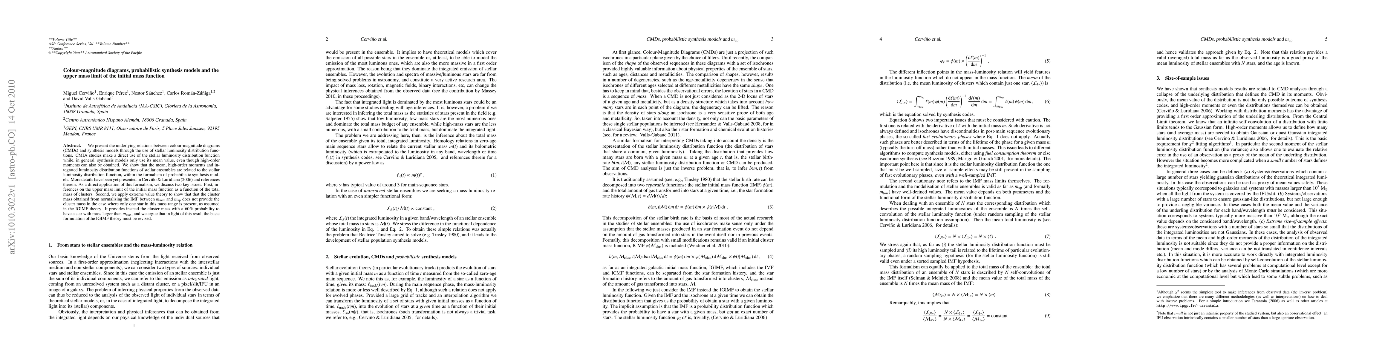 This paper explores the connections between colour-magnitude diagrams (CMDs) and probabilistic synthesis models, demonstrating how CMDs utilize the full stellar luminosity distribution function, while synthesis models typically use its mean value. It applies this framework to discuss the upper mass limit of the initial mass function and critiques the IGIMF theory, suggesting a revision based on the probability of having a star above the mass limit.