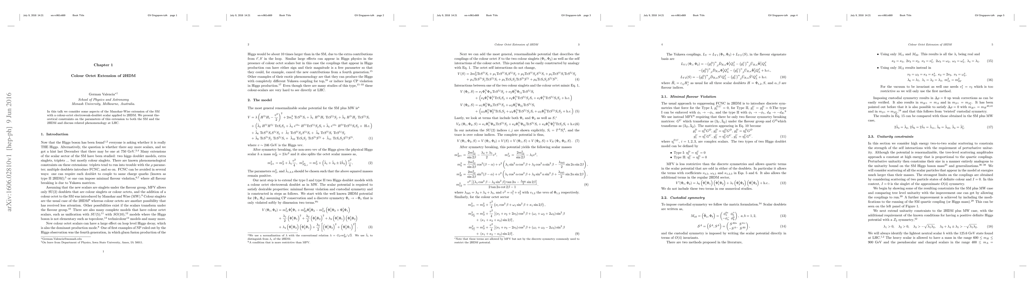 In this talk we consider some aspects of the Manohar-Wise extension of the SM with a colour-octet electroweak-doublet scalar applied to 2HDM. We present theoretical constraints on the parameters of this extension to both the SM and the 2HDM and discuss related phenomenology at LHC.