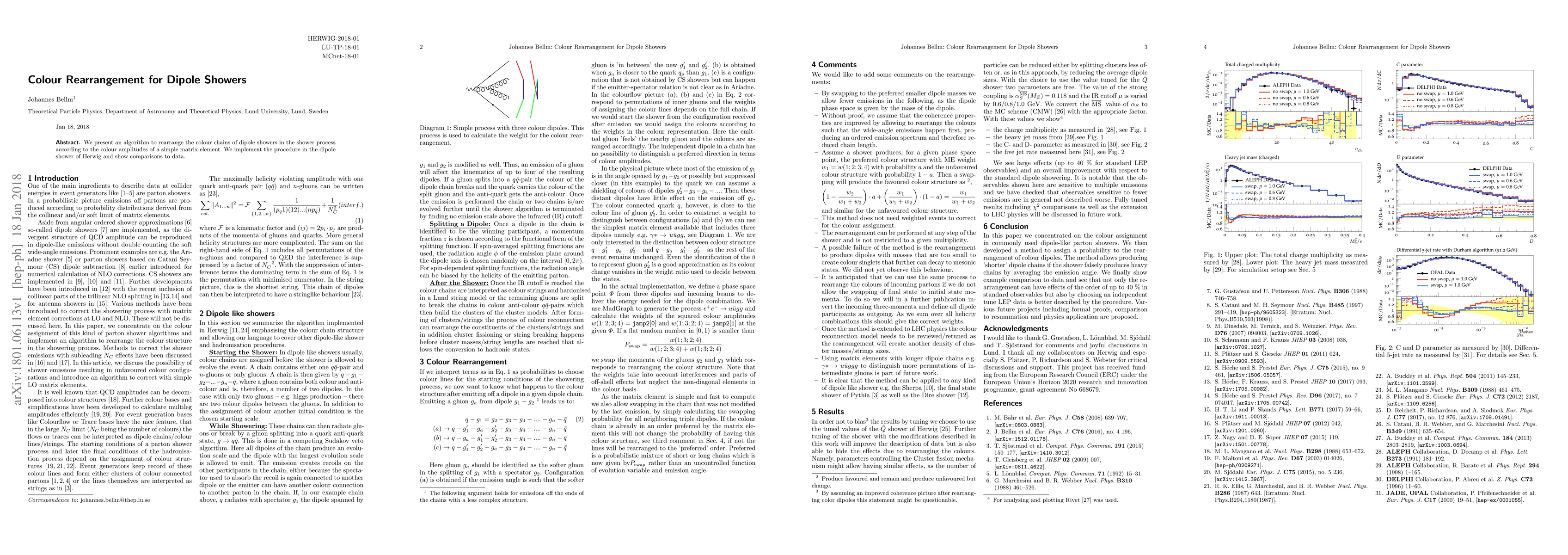 We present an algorithm to rearrange the colour chains of dipole showers in the shower process according to the colour amplitudes of a simple matrix element. We implement the procedure in the dipole shower of Herwig and show comparisons to data.