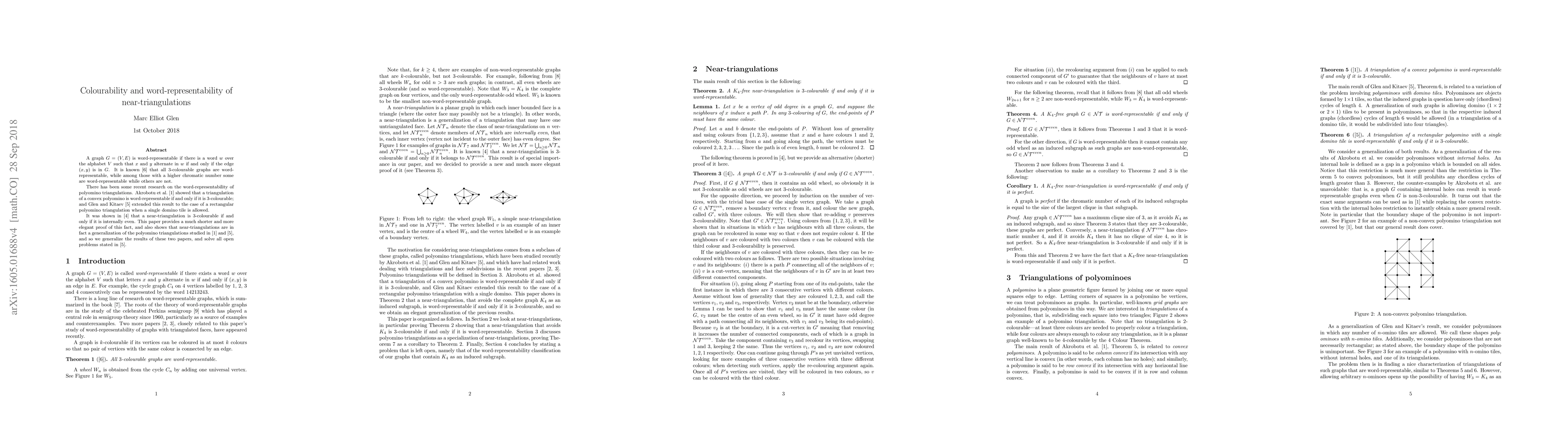 A graph $G = (V,E)$ is word-representable if there is a word $w$ over the alphabet $V$ such that $x$ and $y$ alternate in $w$ if and only if the edge $(x, y)$ is in $G$. It is known [6] that all $3$-colourable graphs are word-representable, while among those with a higher chromatic number some are word-representable while others are not. There has been some recent research on the word-representability of polyomino triangulations. Akrobotu et al.[1] showed that a triangulation of a convex polyomino is word-representable if and only if it is $3$-colourable; and Glen and Kitaev[5] extended this result to the case of a rectangular polyomino triangulation when a single domino tile is allowed. It was shown in [4] that a near-triangulation is $3$-colourable if and only if it is internally even. This paper provides a much shorter and more elegant proof of this fact, and also shows that near-triangulations are in fact a generalization of the polyomino triangulations studied in [1] and [5], and so we generalize the results of these two papers, and solve all open problems stated in [5].