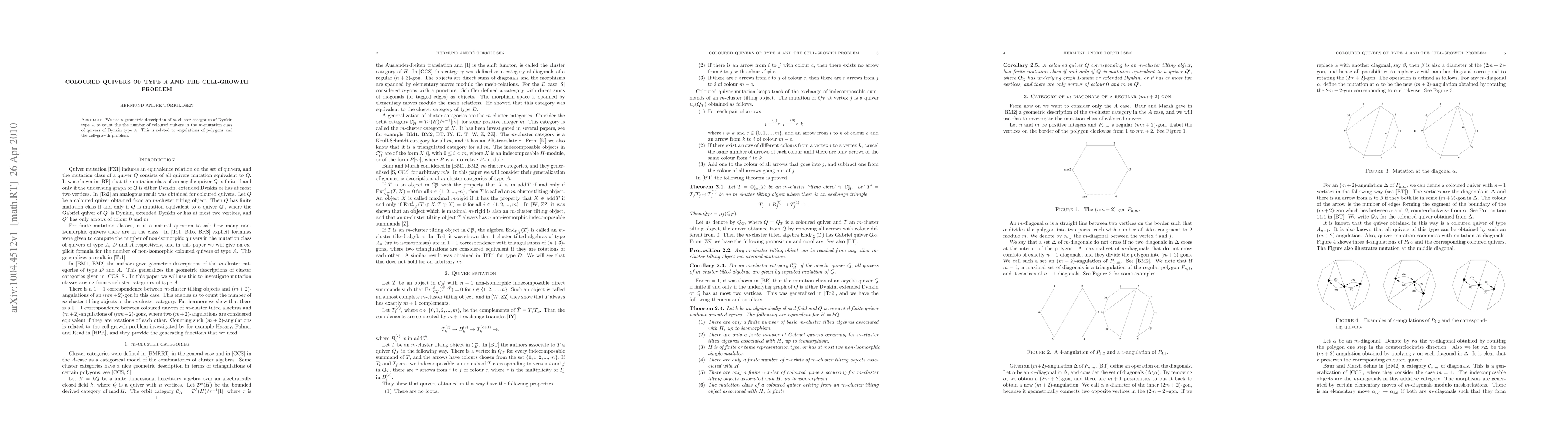 This paper explores the enumeration of coloured quivers within the $m$-mutation class of Dynkin type $A$ using geometric descriptions of $m$-cluster categories and connects this to the cell-growth problem and polygon angulations.