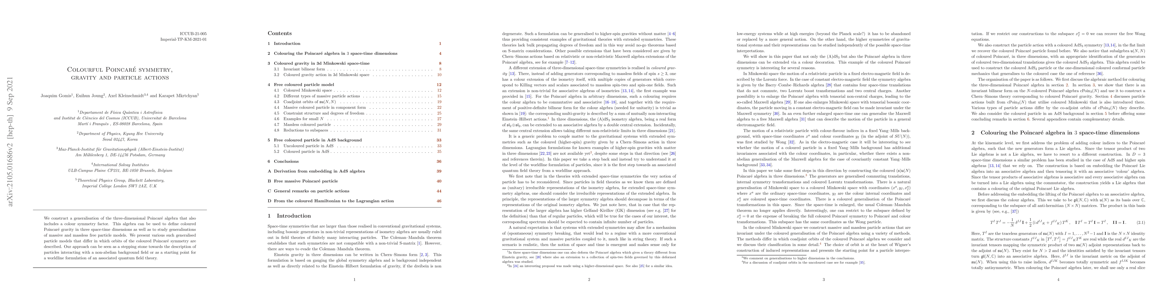 Researchers developed a generalised Poincaré algebra with colour symmetry to describe coloured Poincaré gravity and study modified particle models, potentially leading to new insights into particle interactions and quantum field theories.