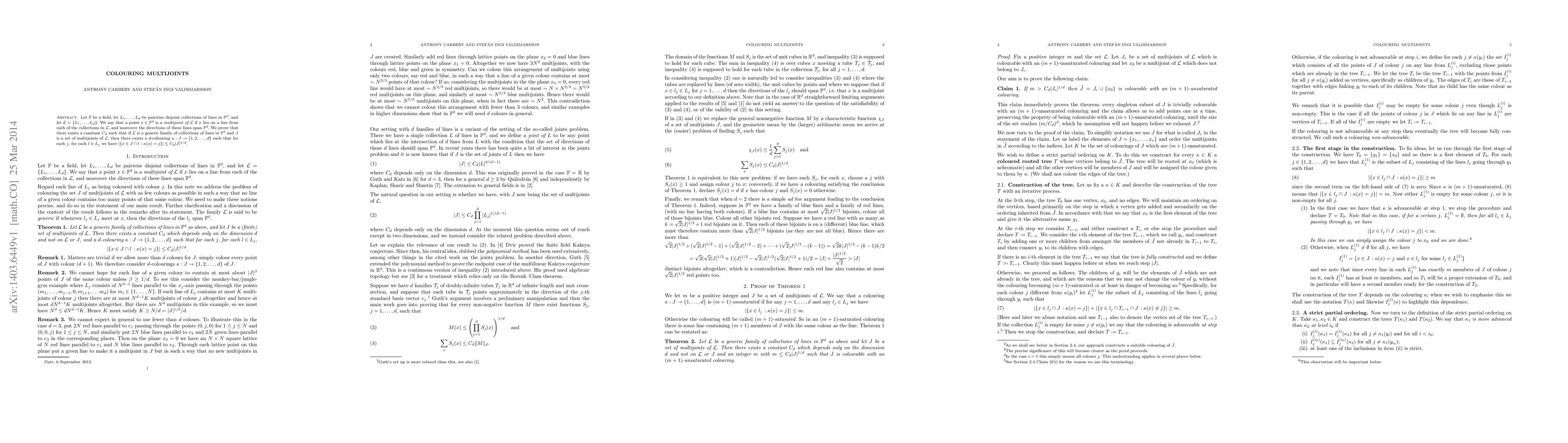 Let L_1, ..., L_d be pairwise disjoint collections of lines in a d-dimensional vector space over some field. If the collections are sufficiently generic we prove that there exists a d-colouring of the set of multijoints J such that for each j, for each line in L_j, the number of points on it of colour j is O(|J|^{1/d}).