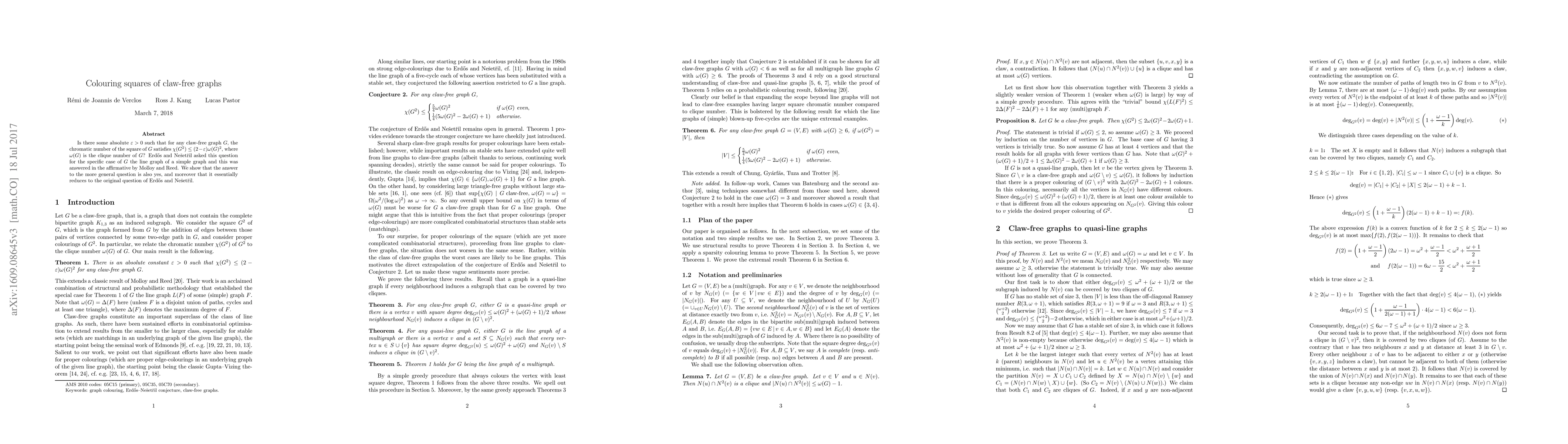 Is there some absolute $\varepsilon > 0$ such that for any claw-free graph $G$, the chromatic number of the square of $G$ satisfies $\chi(G^2) \le (2-\varepsilon) \omega(G)^2$, where $\omega(G)$ is the clique number of $G$? Erd\H{o}s and Ne\v{s}et\v{r}il asked this question for the specific case of $G$ the line graph of a simple graph and this was answered in the affirmative by Molloy and Reed. We show that the answer to the more general question is also yes, and moreover that it essentially reduces to the original question of Erd\H{o}s and Ne\v{s}et\v{r}il.