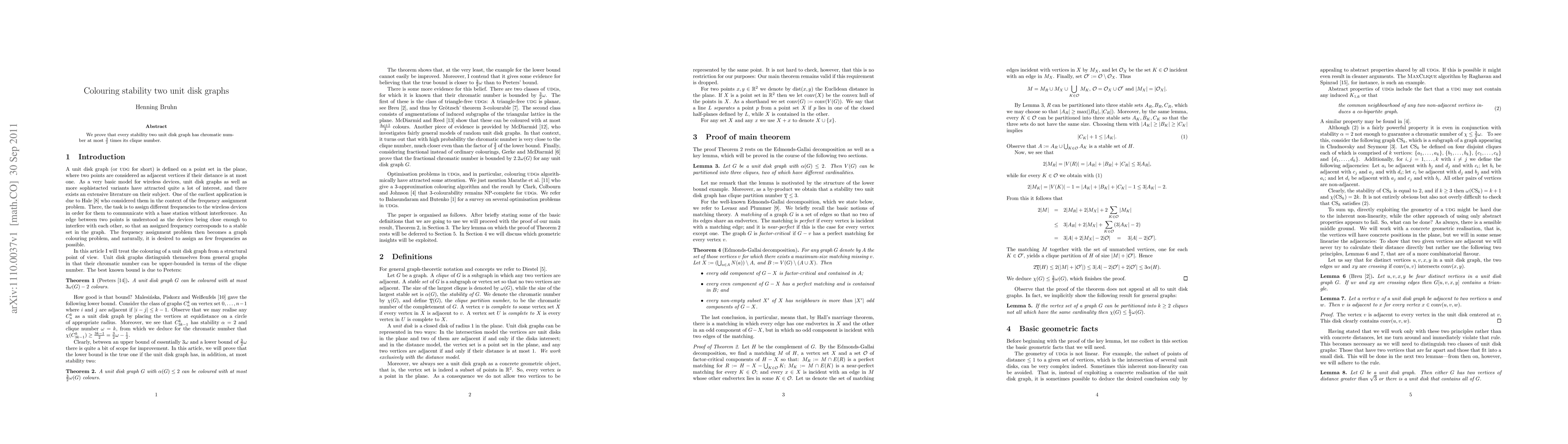 This research establishes that stability two unit disk graphs have a chromatic number no greater than 1.5 times their clique number, proving a significant bound on their colorability.