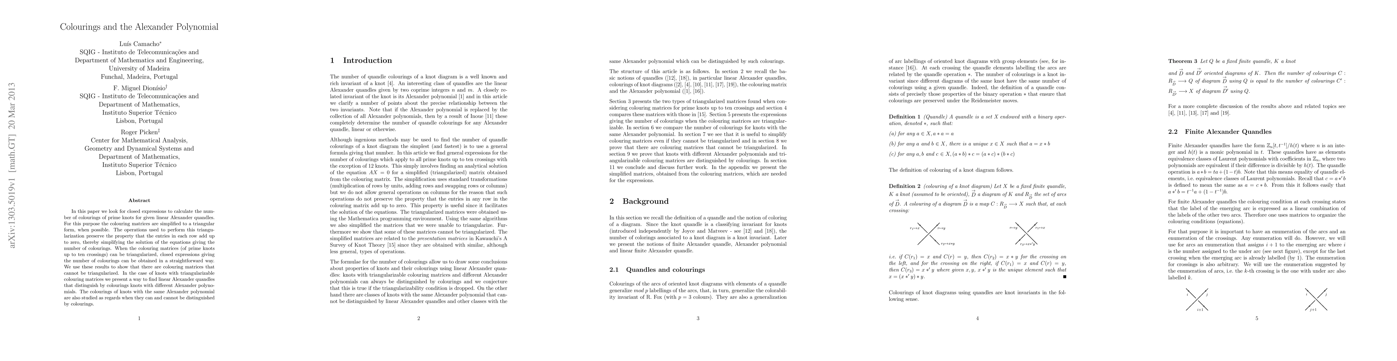 In this paper we look for closed expressions to calculate the number of colourings of prime knots for given linear Alexander quandles. For this purpose the colouring matrices are simplified to a triangular form, when possible. The operations used to perform this triangularization preserve the property that the entries in each row add up to zero, thereby simplifying the solution of the equations giving the number of colourings. When the colouring matrices (of prime knots up to ten crossings) can be triangularized, closed expressions giving the number of colourings can be obtained in a straightforward way. We use these results to show that there are colouring matrices that cannot be triangularized. In the case of knots with triangularizable colouring matrices we present a way to find linear Alexander quandles that distinguish by colourings knots with different Alexander polynomials. The colourings of knots with the same Alexander polynomial are also studied as regards when they can and cannot be distinguished by colourings.