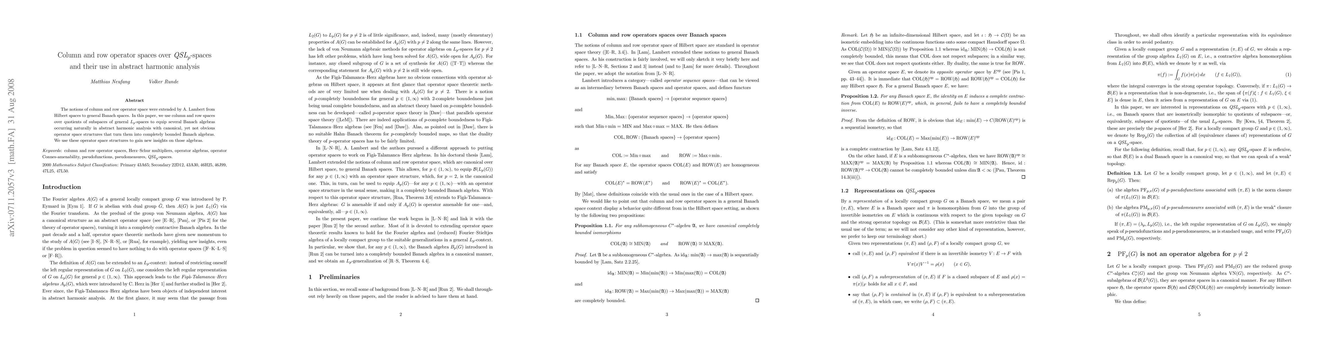 This paper extends the concept of column and row operator spaces to general Banach spaces, specifically using quotients of subspaces of $L_p$-spaces, to provide operator space structures for Banach algebras in abstract harmonic analysis, enhancing their classification as completely bounded Banach algebras.