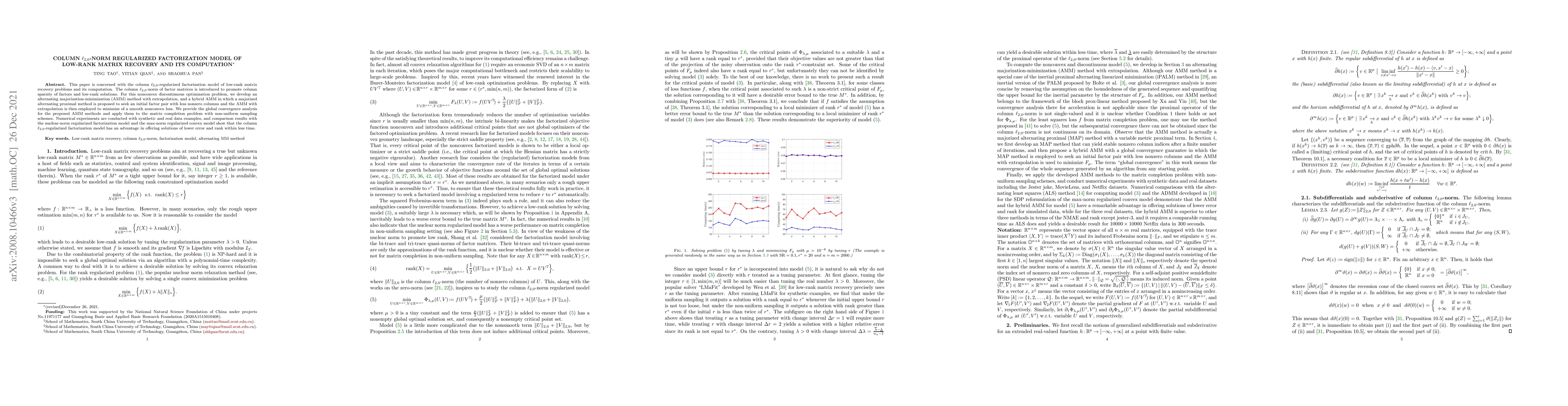 This paper proposes a column $\ell_{2,0}$-norm regularized factorization model for low-rank matrix recovery, introducing an alternating majorization-minimization method with extrapolation and a hybrid approach to achieve sparse solutions. The developed methods show advantages in lower error and rank recovery times compared to nuclear-norm and max-norm regularized models.
