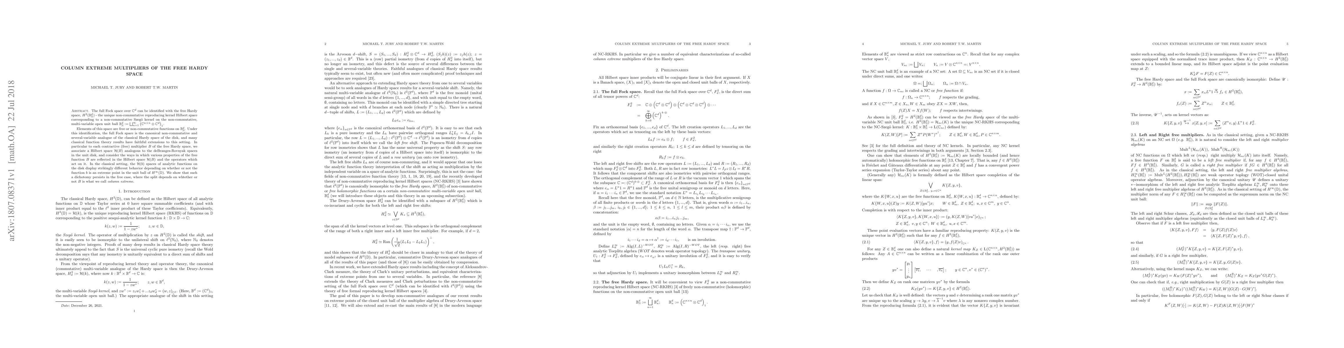 This paper investigates the column extreme multipliers in the free Hardy space, $H^2 (\mathbb B ^d _\mathbb N)$, which is the non-commutative analogue of the classical Hardy space. The authors explore the properties of contractive multipliers and their associated Hilbert spaces, revealing a dichotomy similar to that seen in classical function theory based on whether the multiplier is a column extreme.
