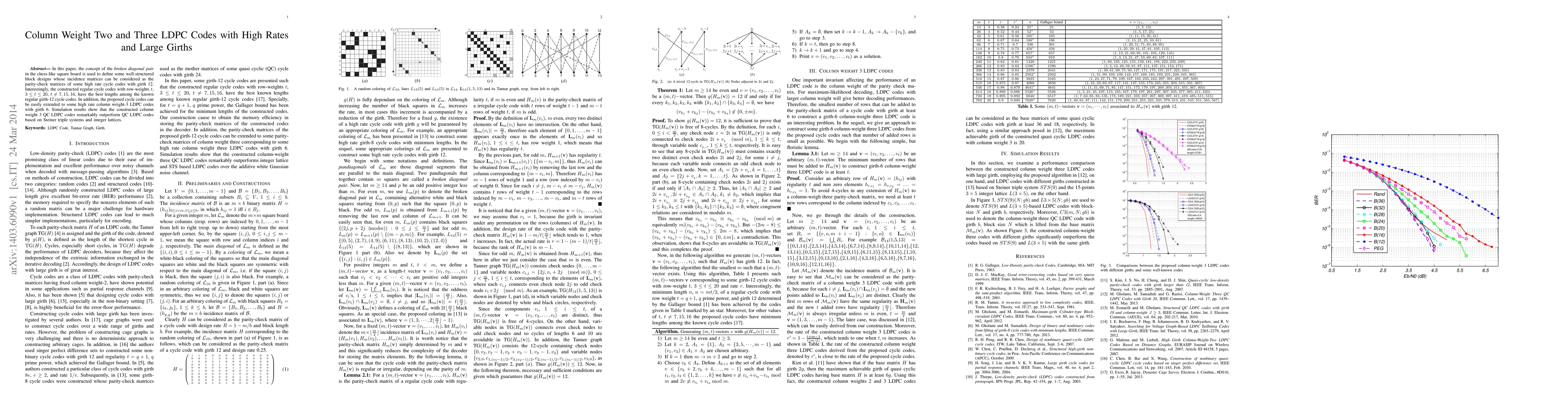 In this paper, the concept of the {\it broken diagonal pair} in the chess-like square board is used to define some well-structured block designs whose incidence matrices can be considered as the parity-check matrices of some high rate cycle codes with girth 12. The structure of the proposed parity-check matrices significantly reduces the complexity of encoding and decoding. Interestingly, the constructed regular cycle codes with row-weights $t$, $3\leq t \leq 20$, $t\neq 7, 15, 16$, have the best lengths among the known regular girth-12 cycle codes. In addition, the proposed cycle codes can be easily extended to some high rate column weight-3 LDPC codes with girth 6. Simulation results show that the constructed codes achieve excellent performances, specially the constructed column weight 3 LDPC codes outperform LDPC codes based on Steiner triple systems (STS).