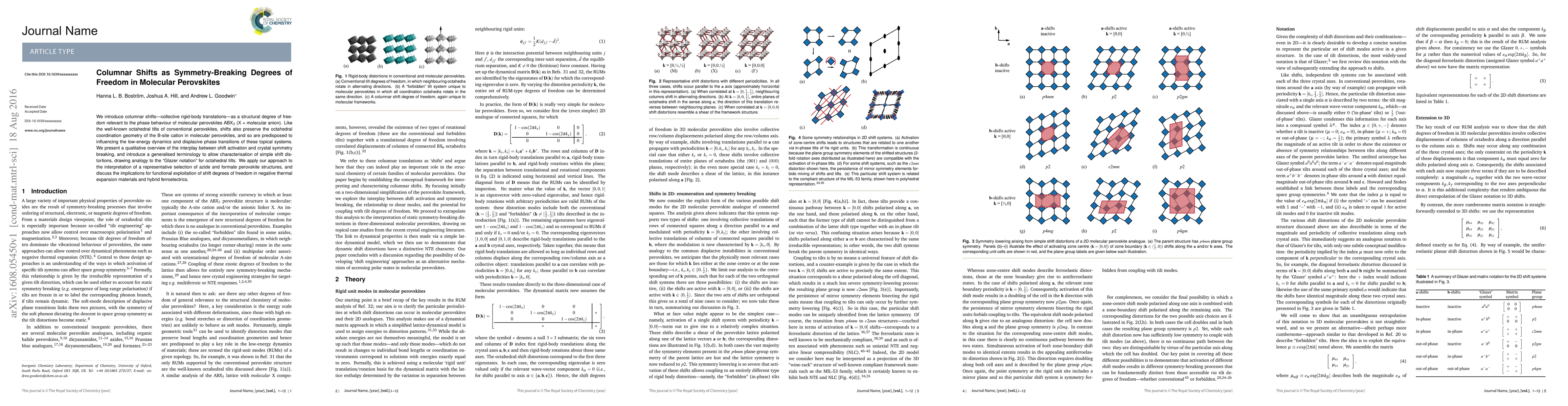 We introduce columnar shifts---collective rigid-body translations---as a structural degree of freedom relevant to the phase behaviour of molecular perovskites ABX$_{\textrm3}$ (X = molecular anion). Like the well-known octahedral tilts of conventional perovskites, shifts also preserve the octahedral coordination geometry of the B-site cation in molecular perovskites, and so are predisposed to influencing the low-energy dynamics and displacive phase transitions of these topical systems. We present a qualitative overview of the interplay between shift activation and crystal symmetry breaking, and introduce a generalised terminology to allow characterisation of simple shift distortions, drawing analogy to the "Glazer notation" for octahedral tilts. We apply our approach to the interpretation of a representative selection of azide and formate perovskite structures, and discuss the implications for functional exploitation of shift degrees of freedom in negative thermal expansion materials and hybrid ferroelectrics.