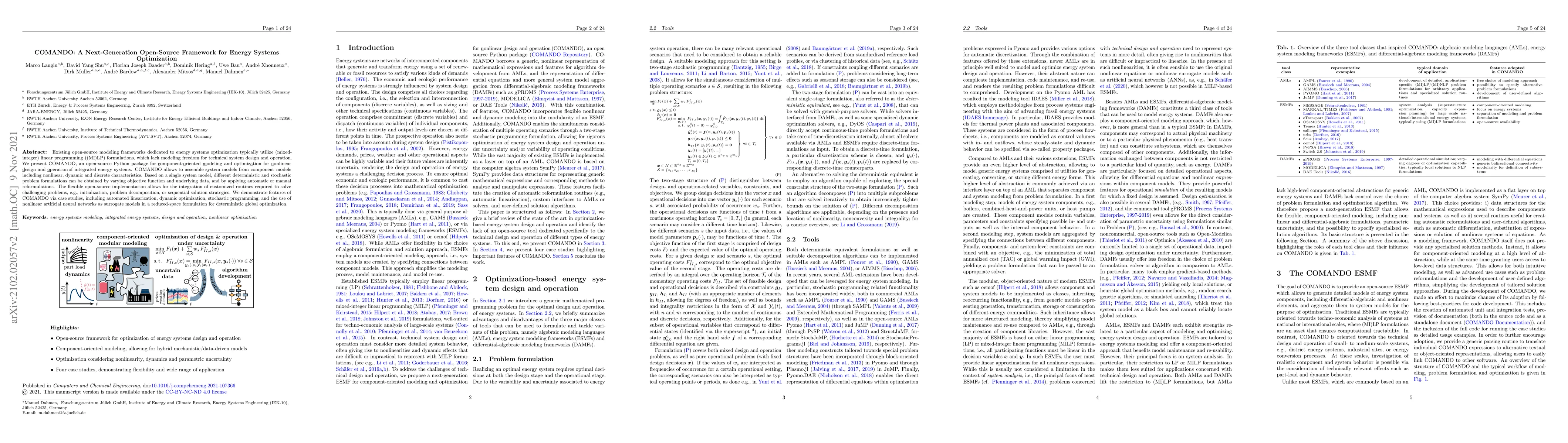 Existing open-source modeling frameworks dedicated to energy systems optimization typically utilize (mixed-integer) linear programming ((MI)LP) formulations, which lack modeling freedom for technical system design and operation. We present COMANDO, an open-source Python package for component-oriented modeling and optimization for nonlinear design and operation of integrated energy systems. COMANDO allows to assemble system models from component models including nonlinear, dynamic and discrete characteristics. Based on a single system model, different deterministic and stochastic problem formulations can be obtained by varying objective function and underlying data, and by applying automatic or manual reformulations. The flexible open-source implementation allows for the integration of customized routines required to solve challenging problems, e.g., initialization, problem decomposition, or sequential solution strategies. We demonstrate features of COMANDO via case studies, including automated linearization, dynamic optimization, stochastic programming, and the use of nonlinear artificial neural networks as surrogate models in a reduced-space formulation for deterministic global optimization.