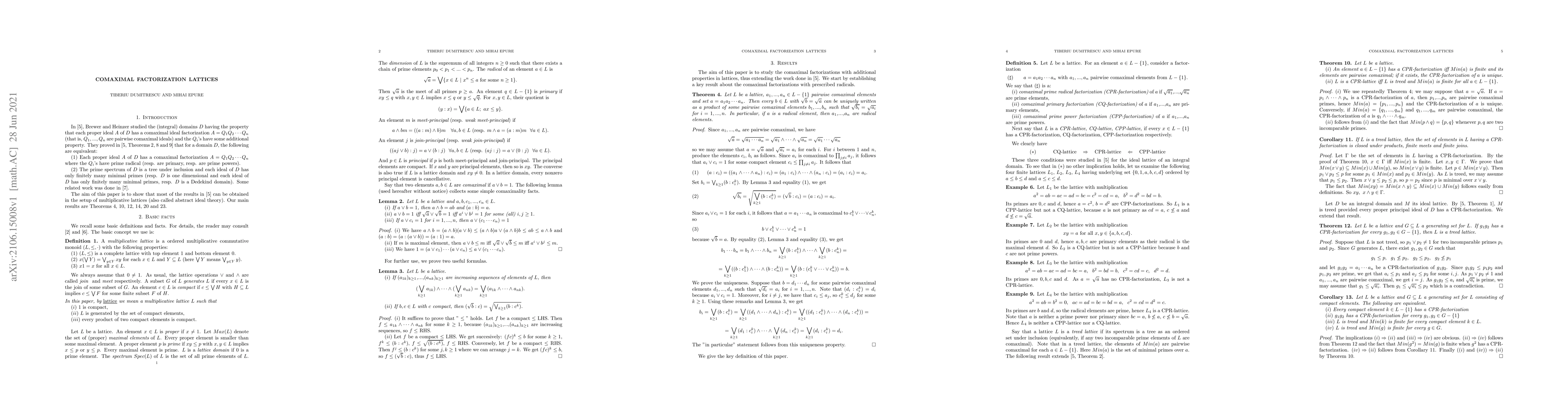 Brewer and Heinzer studied the (integral) domains D having the property that each proper ideal A of D has a comaximal ideal factorization with some additional property. They proved that for a domain D, the following are equivalent: (1) Each proper ideal A of D has a comaximal factorization where the factors have prime radical (resp. are primary, resp. are prime powers). (2) The prime spectrum of D is a tree under inclusion and each ideal of D has only finitely many minimal primes (resp. D is one dimensional and each ideal of D has only finitely many minimal primes, resp. D is a Dedekind domain). The aim of this paper is to show that most of the results can be obtained in the setup of multiplicative lattices.