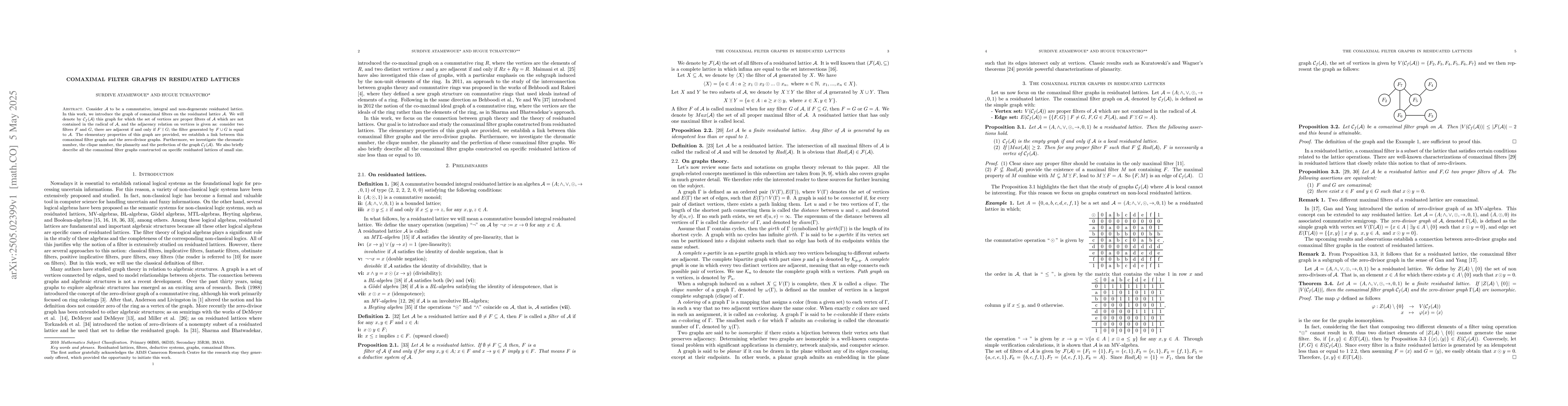 The paper presents a detailed analysis of comaximal filter graphs, linking them to zero-divisor graphs and examining their structural properties, including chromatic and clique numbers, planarity, and perfection.