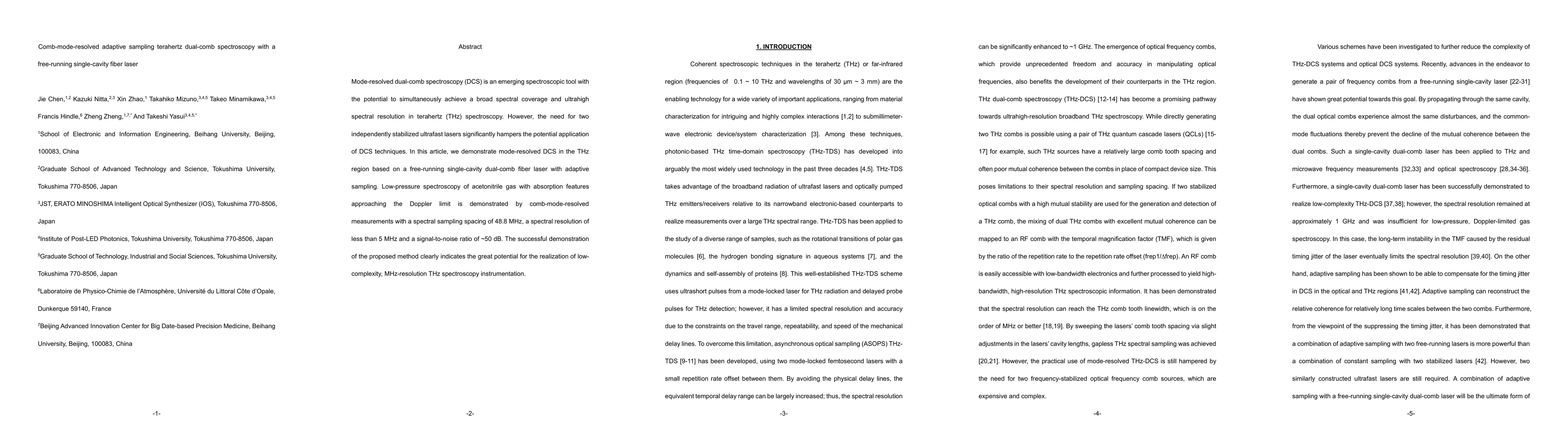 This paper presents a mode-resolved dual-comb spectroscopy method using a free-running single-cavity fiber laser for THz applications, achieving high spectral resolution and a low-complexity setup. The technique demonstrates MHz-resolution spectroscopy on acetonitrile gas with high signal-to-noise ratio, indicating potential for simplified THz instrumentation.