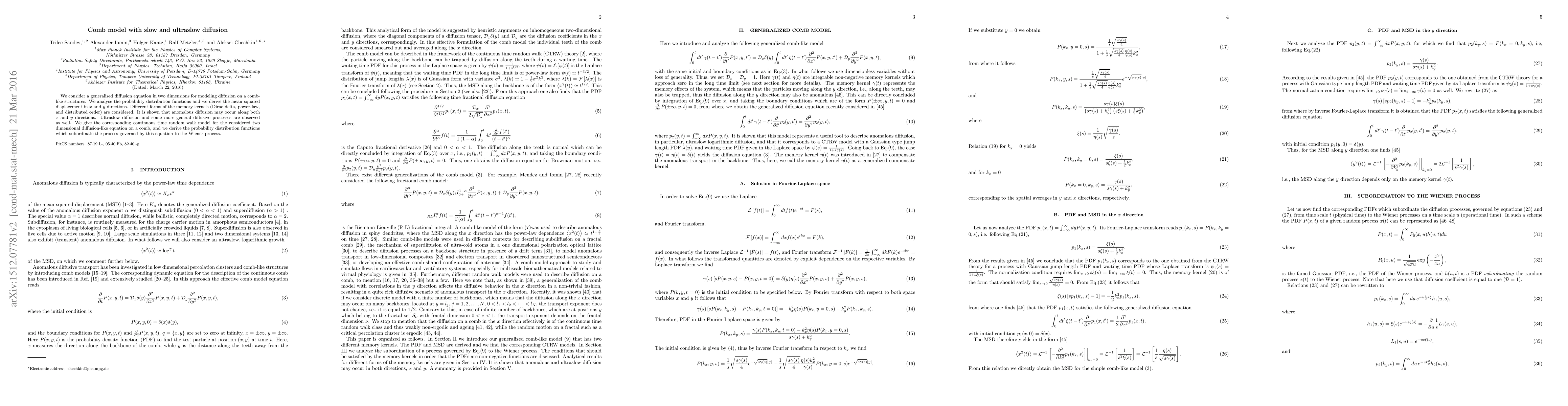 This research is important as it models anomalous diffusion in a comb-like structure, which can be applied to various real-world phenomena.