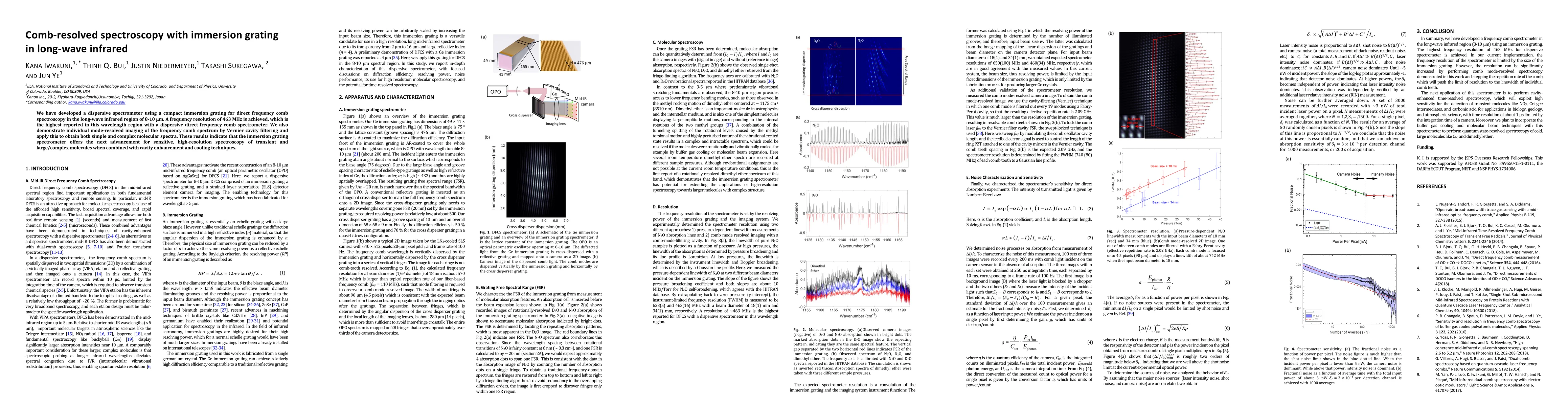 This research develops a high-resolution dispersive spectrometer using an immersion grating for long-wave infrared spectroscopy, achieving the highest frequency resolution in this region. It enables detailed molecular spectra analysis and holds promise for sensitive, high-resolution studies of transient and complex molecules.