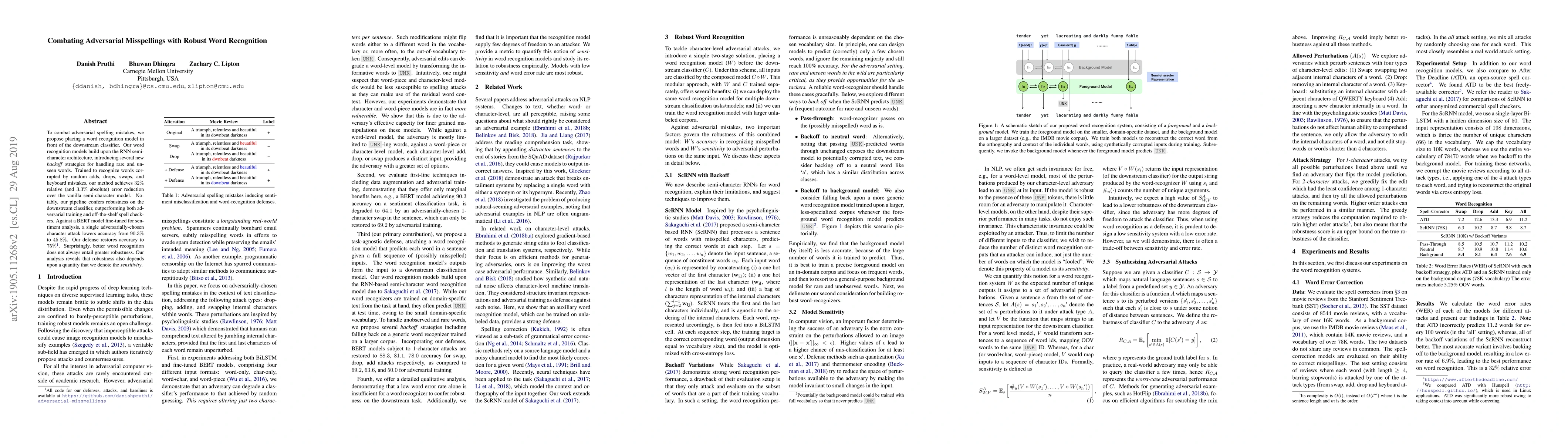 Researchers propose a word recognition model to combat adversarial misspellings in text classification, achieving 32% relative error reduction over the baseline model. Their method outperforms traditional spell checkers and restores accuracy after a character attack.
