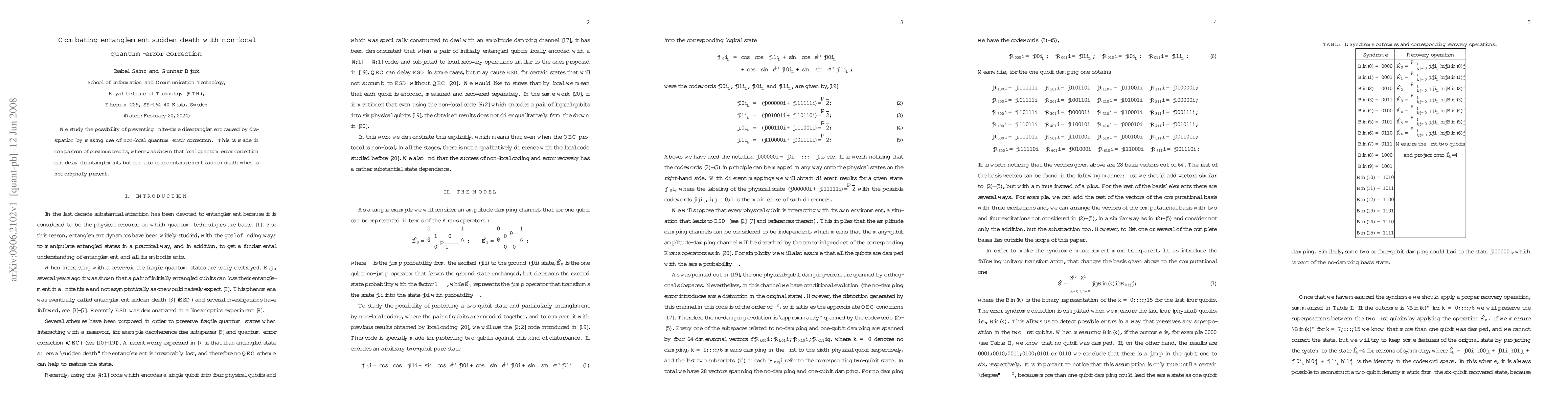 Summary: This paper explores the use of non-local quantum error correction to prevent finite-time disentanglement due to dissipation, contrasting with local methods that can cause entanglement sudden death even when it wasn't initially present.