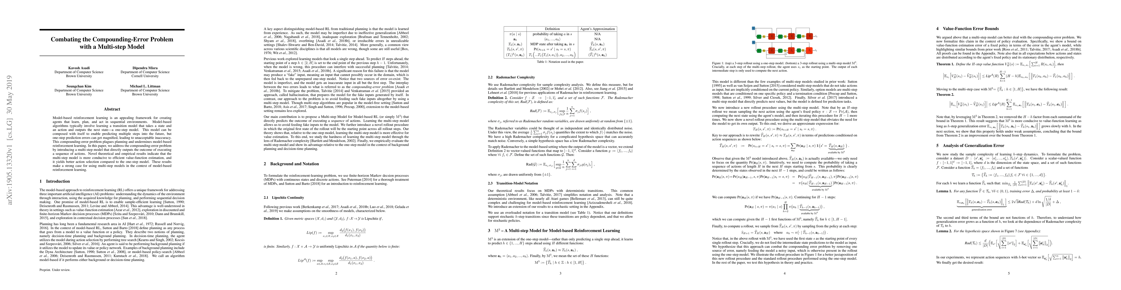 This paper proposes a multi-step model to address the compounding-error problem in model-based reinforcement learning, where errors in one-step predictions magnify over time. The multi-step model directly predicts outcomes from sequences of actions, leading to more accurate value-function estimation and better action selection.