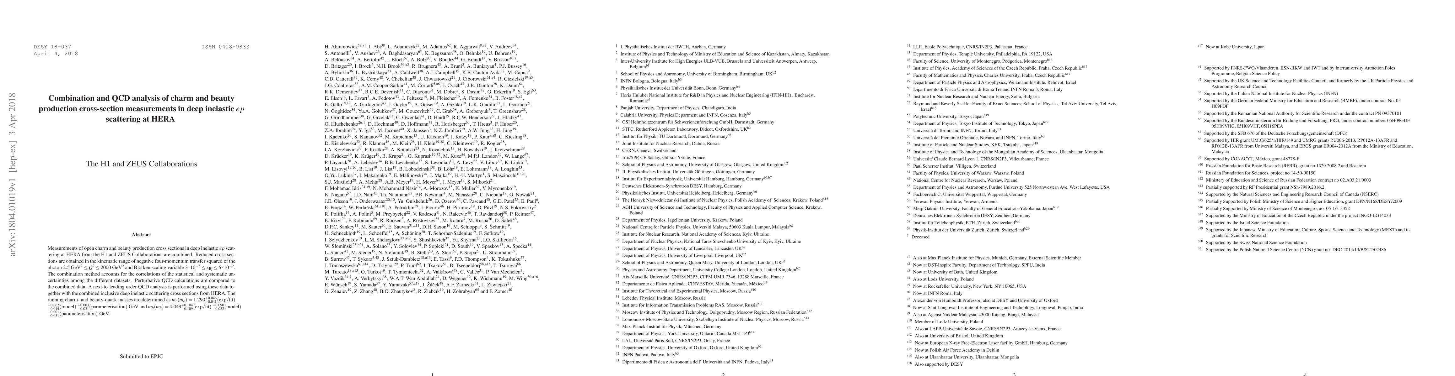 This paper combines charm and beauty production cross-section measurements from the H1 and ZEUS Collaborations at HERA, analyzing deep inelastic $ep$ scattering. The study determines the running charm and beauty quark masses using next-to-leading order QCD analysis, yielding $m_c(m_c) = 1.290 \pm 0.062$ GeV and $m_b(m_b) = 4.049 \pm 0.104$ GeV.