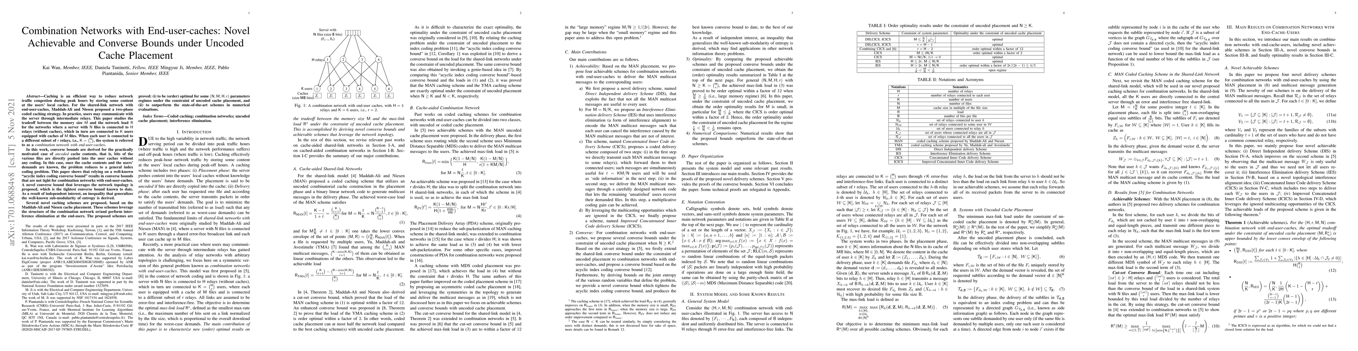 Caching is an efficient way to reduce network traffic congestion during peak hours by storing some content at the users' local caches. For the shared-link network with end-user-caches, Maddah-Ali and Niesen proposed a two-phase coded caching strategy. In practice, users may communicate with the server through intermediate relays. This paper studies the tradeoff between the memory size $M$ and the network load $R$ for networks where a server with $N$ files is connected to $H$ relays (without caches), which in turn are connected to $K$ users equipped with caches of $M$ files. When each user is connected to a different subset of $r$ relays, i.e., $K = \binom{H}{r}$, the system is referred to as a {\it combination network with end-user-caches}. In this work, converse bounds are derived for the practically motivated case of {\it uncoded} cache contents, that is, bits of the various files are directly pushed into the user caches without any coding. In this case, once the cache contents and the user demands are known, the problem reduces to a general index coding problem.This paper shows that relying on a well-known "acyclic index coding converse bound" results in converse bounds that are not tight for combination networks with end-user-caches. A novel converse bound that leverages the network topology is proposed, which is the tightest converse bound known to date. As a result of independent interest, an inequality that generalizes the well-known sub-modularity of entropy is derived. Several novel caching schemes are proposed, based on the Maddah-Ali and Niesen cache placement. The proposed schemes are proved: (i) to be (order) optimal for some $(N,M,H,r)$ parameters regimes under the constraint of uncoded cache placement, and (ii) to outperform the state-of-the-art schemes in numerical evaluations.