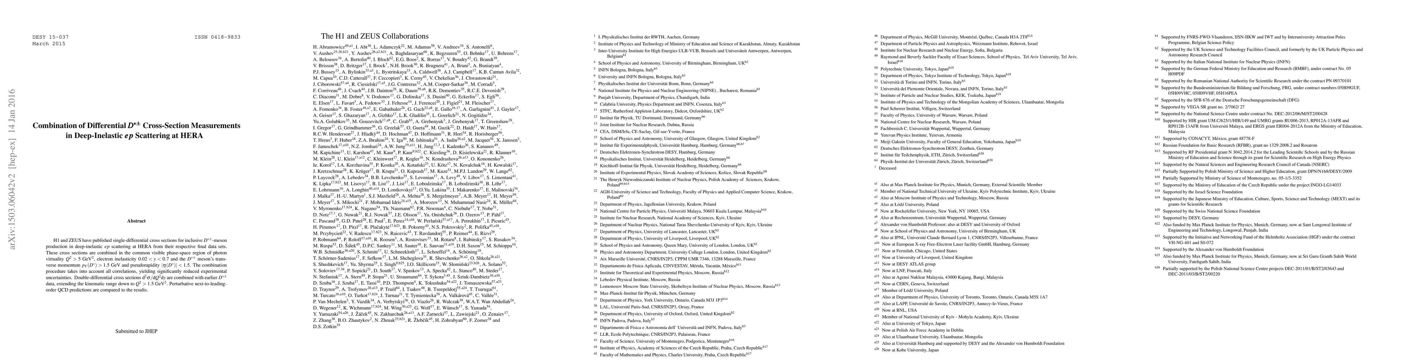 This paper combines differential cross-section measurements for D^{*\pm} meson production from H1 and ZEUS experiments in deep-inelastic ep scattering at HERA, reducing experimental uncertainties. The results are compared to perturbative next-to-leading-order QCD predictions.