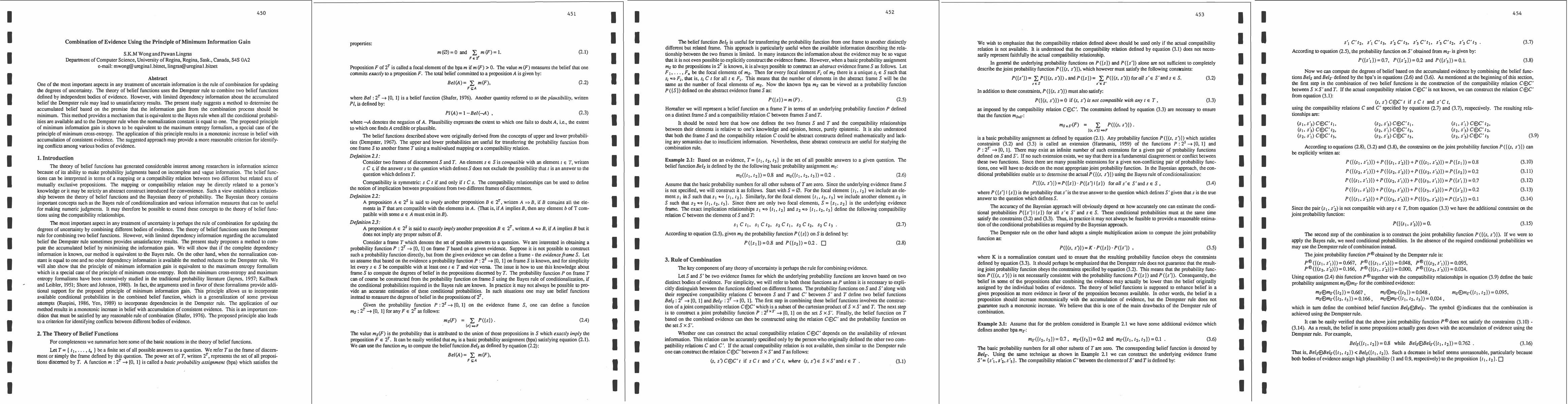 One of the most important aspects in any treatment of uncertain information is the rule of combination for updating the degrees of uncertainty. The theory of belief functions uses the Dempster rule to combine two belief functions defined by independent bodies of evidence. However, with limited dependency information about the accumulated belief the Dempster rule may lead to unsatisfactory results. The present study suggests a method to determine the accumulated belief based on the premise that the information gain from the combination process should be minimum. This method provides a mechanism that is equivalent to the Bayes rule when all the conditional probabilities are available and to the Dempster rule when the normalization constant is equal to one. The proposed principle of minimum information gain is shown to be equivalent to the maximum entropy formalism, a special case of the principle of minimum cross-entropy. The application of this principle results in a monotonic increase in belief with accumulation of consistent evidence. The suggested approach may provide a more reasonable criterion for identifying conflicts among various bodies of evidence.