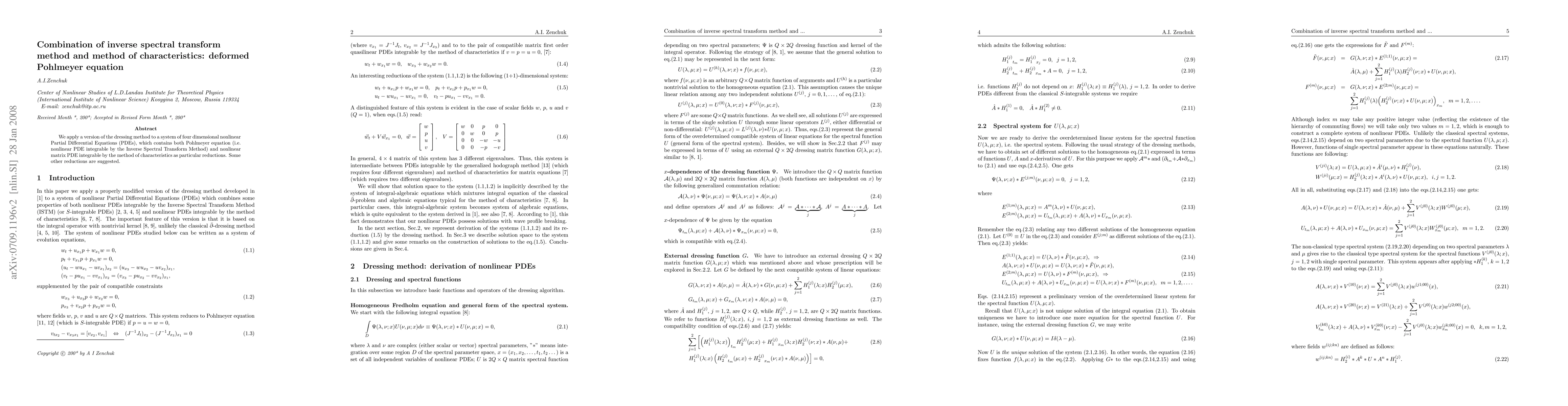 Summary: This paper combines the inverse spectral transform method with the method of characteristics to solve a four-dimensional system of nonlinear PDEs, incorporating both the integrable Pohlmeyer equation and other reductions, suggesting new approaches for solving complex integrable systems.