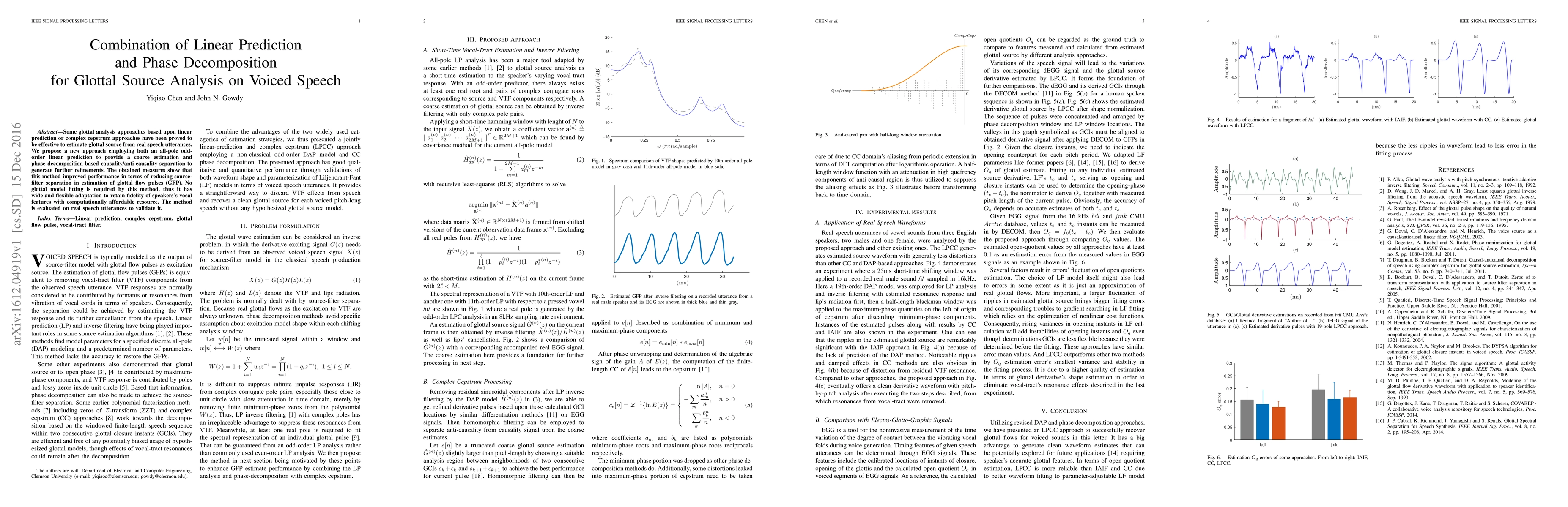 This paper proposes a novel method combining linear prediction and phase decomposition for glottal source analysis in voiced speech, improving glottal flow pulse estimation without requiring glottal model fitting. The approach enhances performance by reducing source-filter separation and maintains speaker vocal features efficiently.