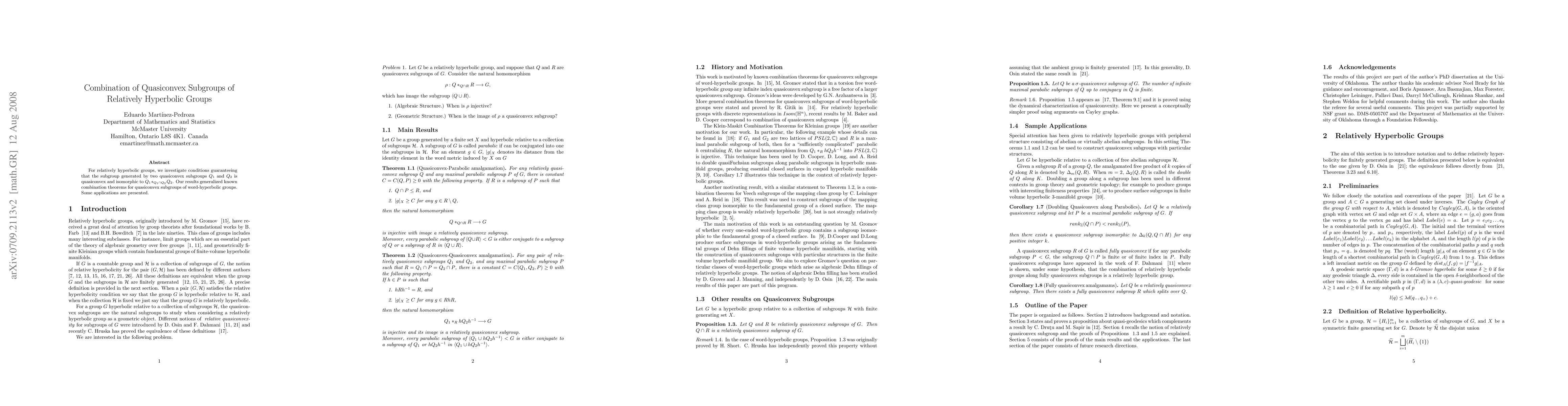 This paper studies conditions for the combination of two quasiconvex subgroups in relatively hyperbolic groups, showing their generated subgroup remains quasiconvex and isomorphic to the amalgamated free product over their intersection. The results extend existing combination theorems for quasiconvex subgroups in hyperbolic groups with applications highlighted.