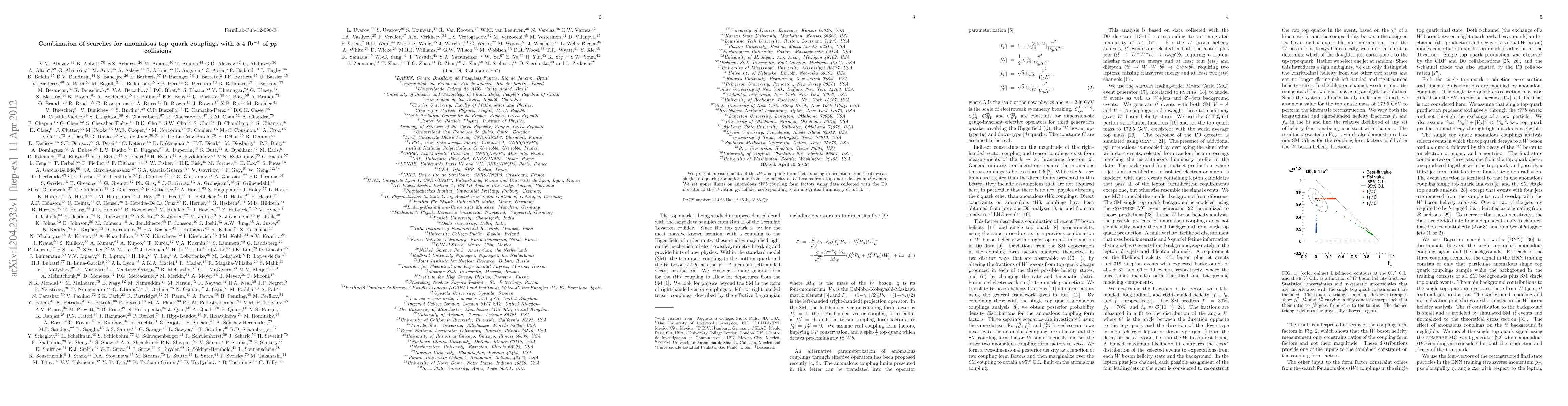 This paper investigates anomalous top quark couplings through measurements of tWb coupling form factors using single top quark production and W boson helicity in ttbar events, setting upper limits on these couplings with data from the D0 detector at the Tevatron. The analysis is based on an integrated luminosity of 5.4 fb^-1 from ppbar collisions.