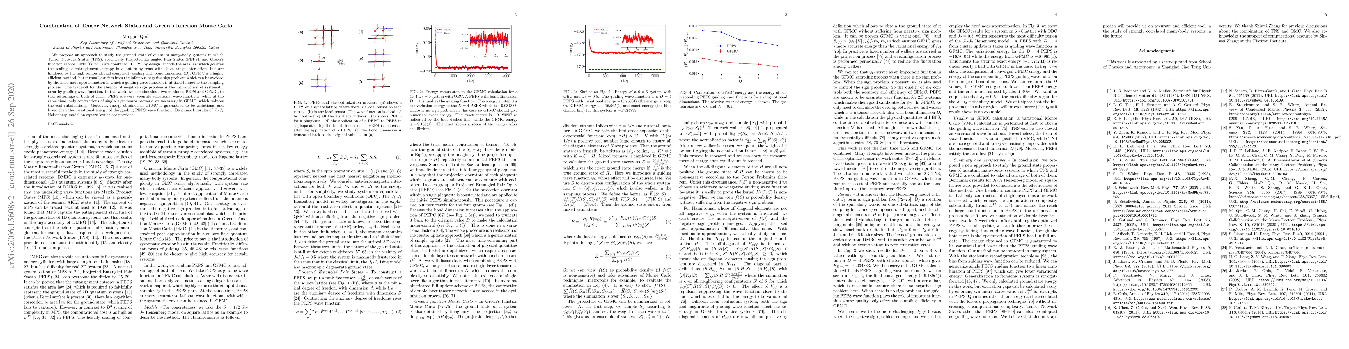 This paper proposes a hybrid method combining Tensor Network States (PEPS) and Green's function Monte Carlo (GFMC) to study quantum many-body systems, leveraging PEPS's accuracy and GFMC's efficiency while avoiding the negative sign problem. Benchmark results on the $J_1$-$J_2$ Heisenberg model show promising performance.