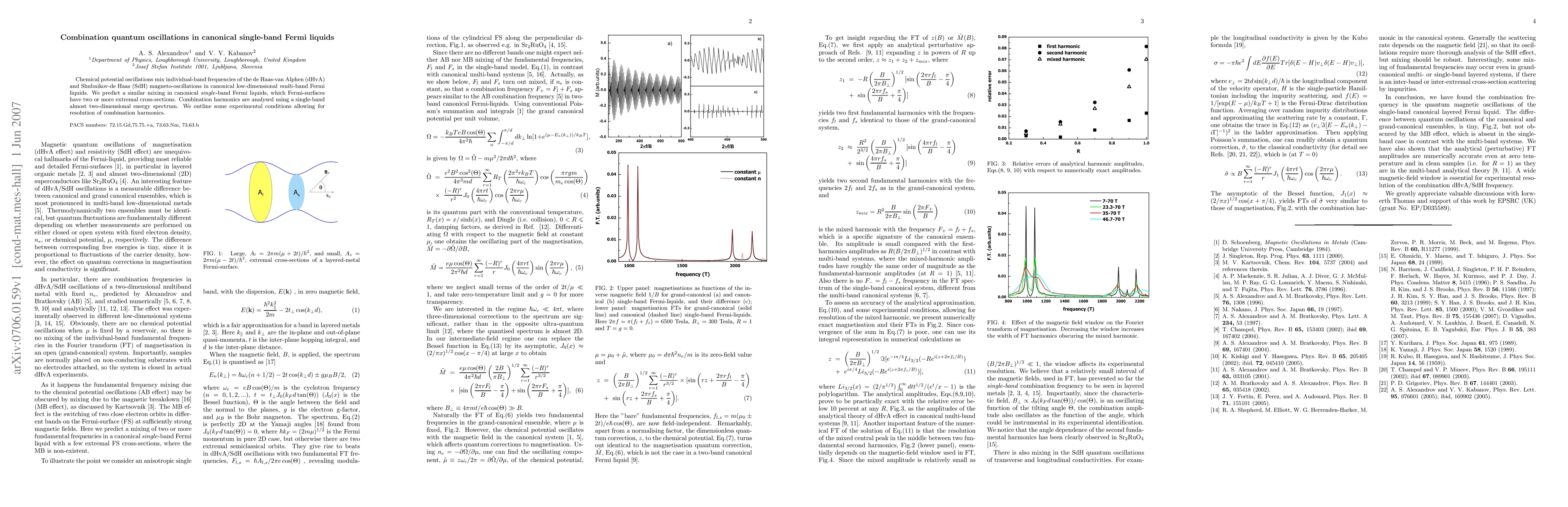 Chemical potential oscillations mix individual-band frequencies of the de Haas-van Alphen (dHvA) and Shubnikov-de Haas (SdH) magneto-oscillations in canonical low-dimensional multi-band Fermi liquids. We predict a similar mixing in canonical single-band Fermi liquids, which Fermi-surfaces have two or more extremal cross-sections. Combination harmonics are analysed using a single-band almost two-dimensional energy spectrum. We outline some experimental conditions allowing for resolution of combination harmonics.