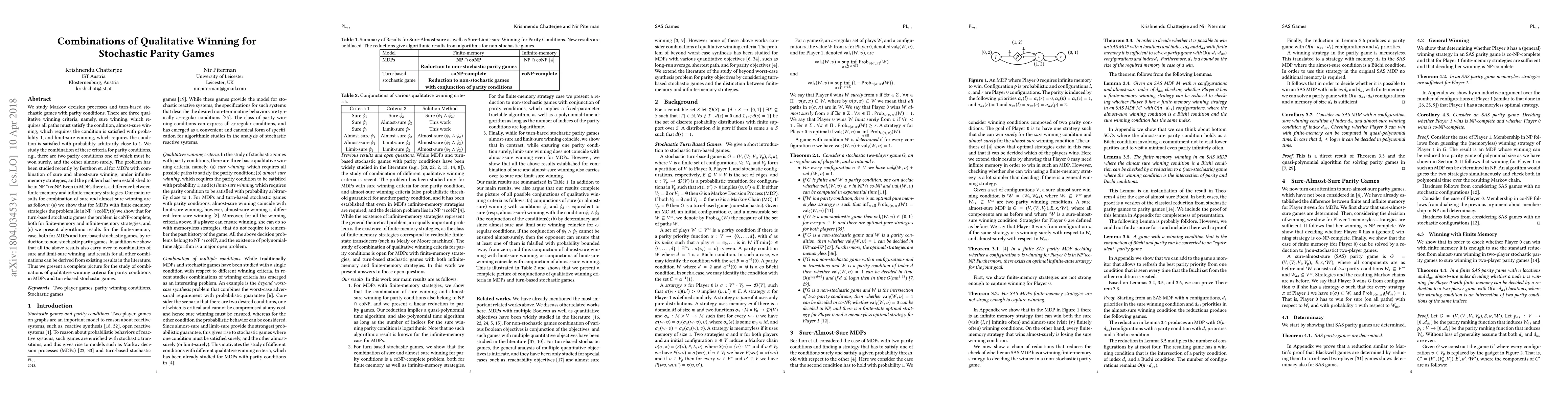 This paper investigates the complexity of combining qualitative winning criteria—sure, almost-sure, and limit-sure—in stochastic parity games. It establishes that the problem lies in NP ∩ coNP for MDPs with finite-memory strategies and is coNP-complete for turn-based stochastic games, regardless of memory strategy. Algorithmic results are presented for the finite-memory case.