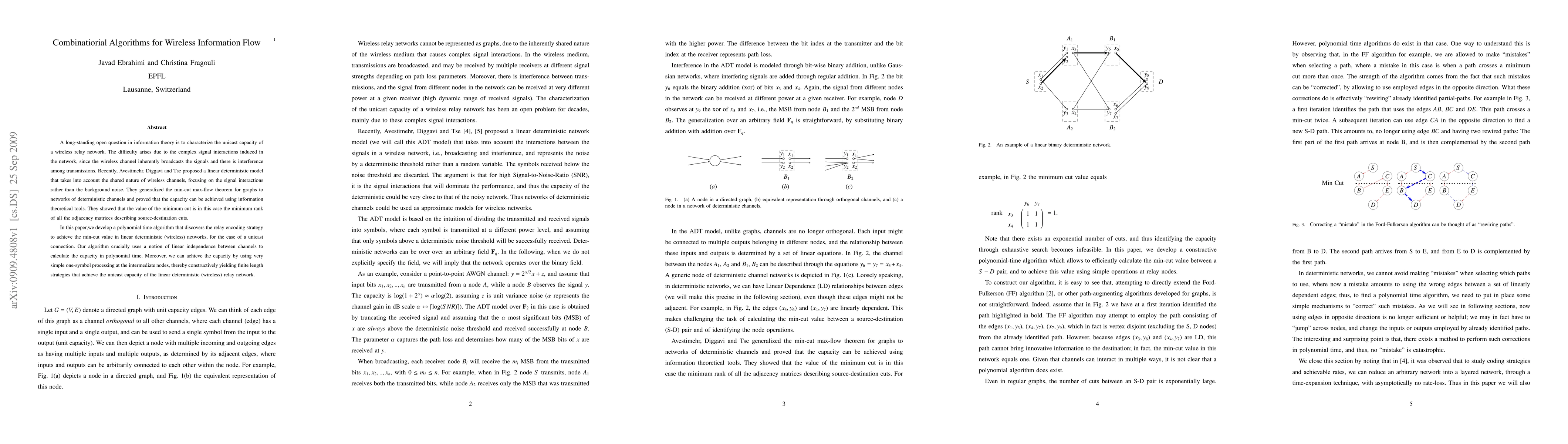 A long-standing open question in information theory is to characterize the unicast capacity of a wireless relay network. The difficulty arises due to the complex signal interactions induced in the network, since the wireless channel inherently broadcasts the signals and there is interference among transmissions. Recently, Avestimehr, Diggavi and Tse proposed a linear deterministic model that takes into account the shared nature of wireless channels, focusing on the signal interactions rather than the background noise. They generalized the min-cut max-flow theorem for graphs to networks of deterministic channels and proved that the capacity can be achieved using information theoretical tools. They showed that the value of the minimum cut is in this case the minimum rank of all the adjacency matrices describing source-destination cuts. In this paper, we develop a polynomial time algorithm that discovers the relay encoding strategy to achieve the min-cut value in linear deterministic (wireless) networks, for the case of a unicast connection. Our algorithm crucially uses a notion of linear independence between channels to calculate the capacity in polynomial time. Moreover, we can achieve the capacity by using very simple one-symbol processing at the intermediate nodes, thereby constructively yielding finite length strategies that achieve the unicast capacity of the linear deterministic (wireless) relay network.