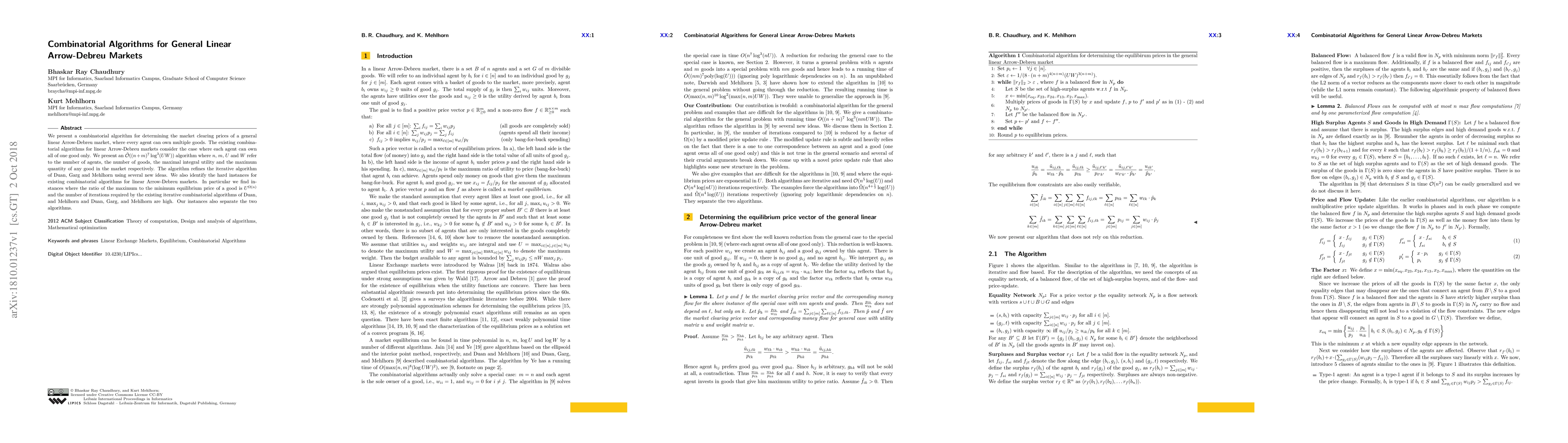 We present a combinatorial algorithm for determining the market clearing prices of a general linear Arrow-Debreu market, where every agent can own multiple goods. The existing combinatorial algorithms for linear Arrow-Debreu markets consider the case where each agent can own all of one good only. We present an $\tilde{\mathcal{O}}((n+m)^7 \log^3(UW))$ algorithm where $n$, $m$, $U$ and $W$ refer to the number of agents, the number of goods, the maximal integral utility and the maximum quantity of any good in the market respectively. The algorithm refines the iterative algorithm of Duan, Garg and Mehlhorn using several new ideas. We also identify the hard instances for existing combinatorial algorithms for linear Arrow-Debreu markets. In particular we find instances where the ratio of the maximum to the minimum equilibrium price of a good is $U^{\Omega(n)}$ and the number of iterations required by the existing iterative combinatorial algorithms of Duan, and Mehlhorn and Duan, Garg, and Mehlhorn are high. Our instances also separate the two algorithms.