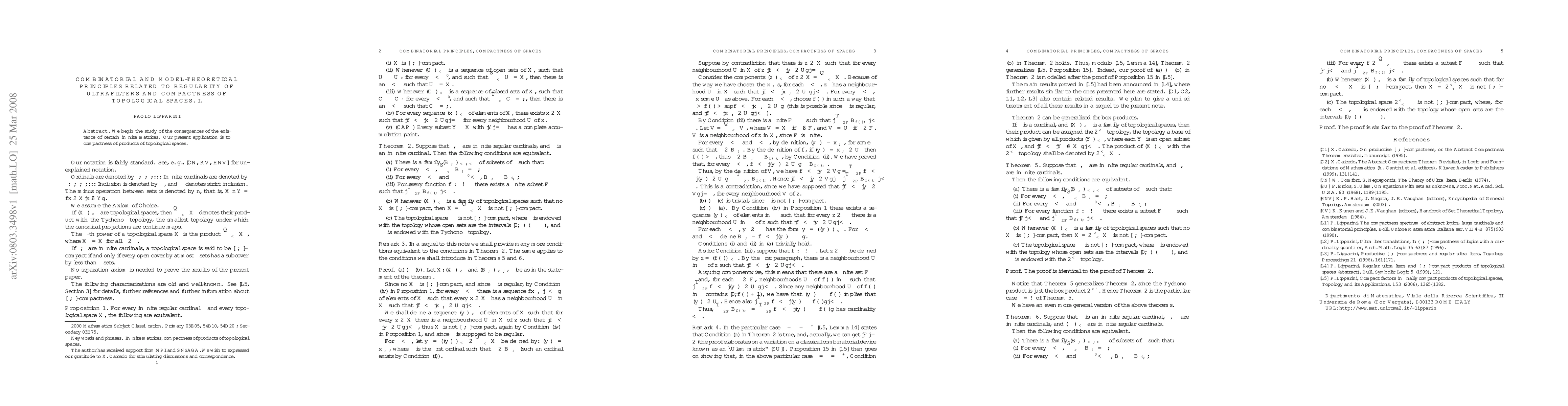 Summary: This paper explores the implications of infinite matrices on the regularity of ultrafilters and the compactness of topological spaces, focusing on the compactness of products of topological spaces. The study initiates a broader investigation into combinatorial and model-theoretical principles.